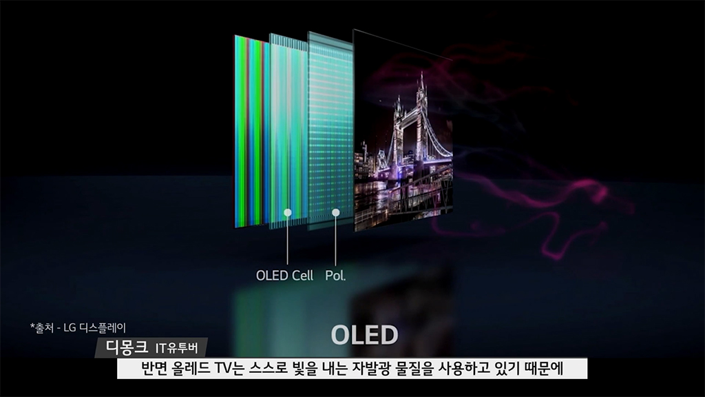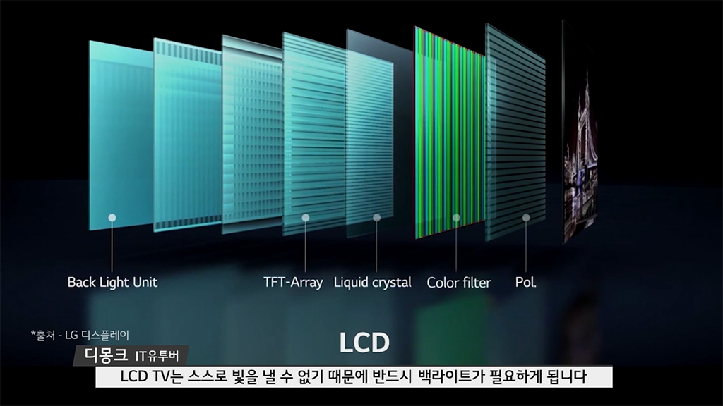 IT테크 유튜버인 디몽크의 답변처럼 백라이트가 존재하는 LCD와 스스로 발광하는 올레드(OLED)의 차이는 큰데요.