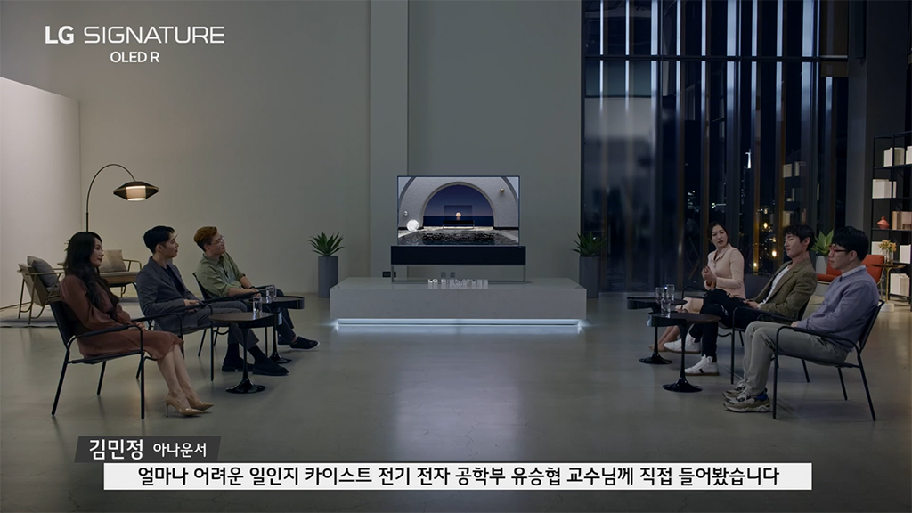 토크 쇼 방식으로 진행된 이번 LG 시그니처 올레드 R 출시 행사에는 허지웅 칼럼니스트, 김소현 뮤지컬 배우, 이동진 영화평론가, 양태오 인테리어 디자이너, 유튜버 디몽크 등의 유명인사가 초대되었습니다.
