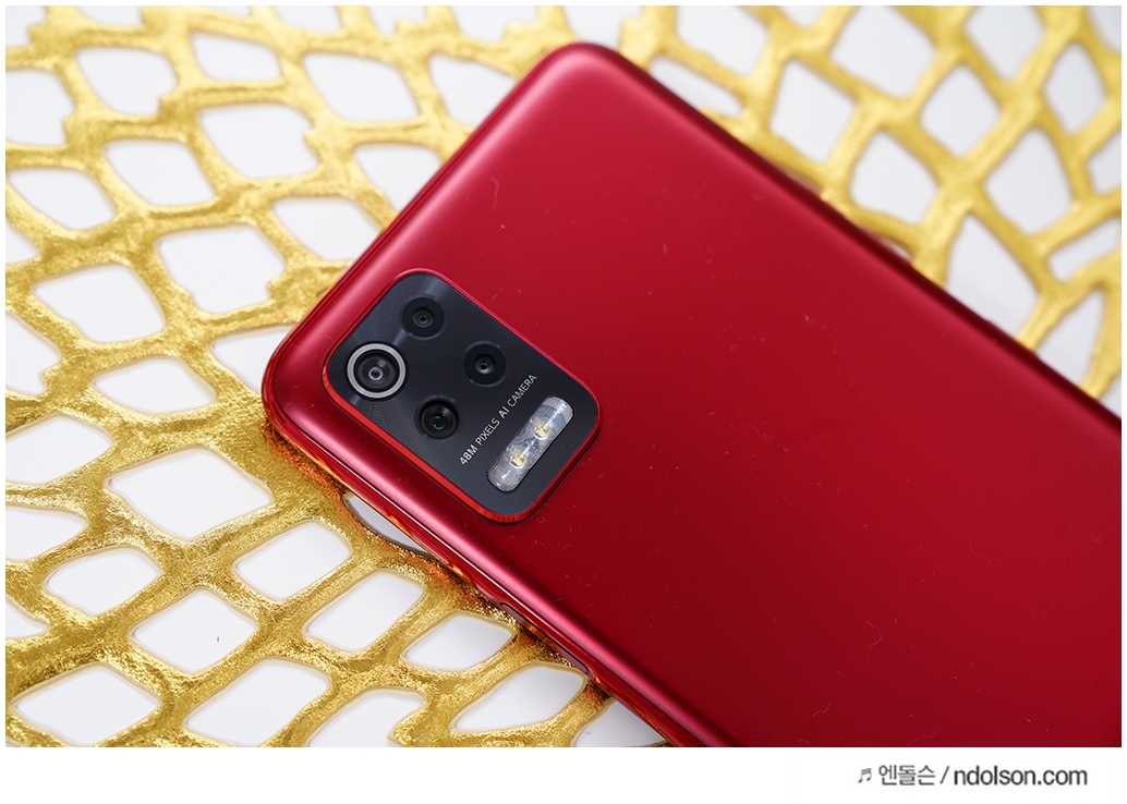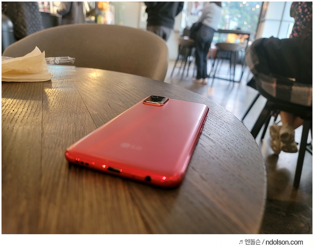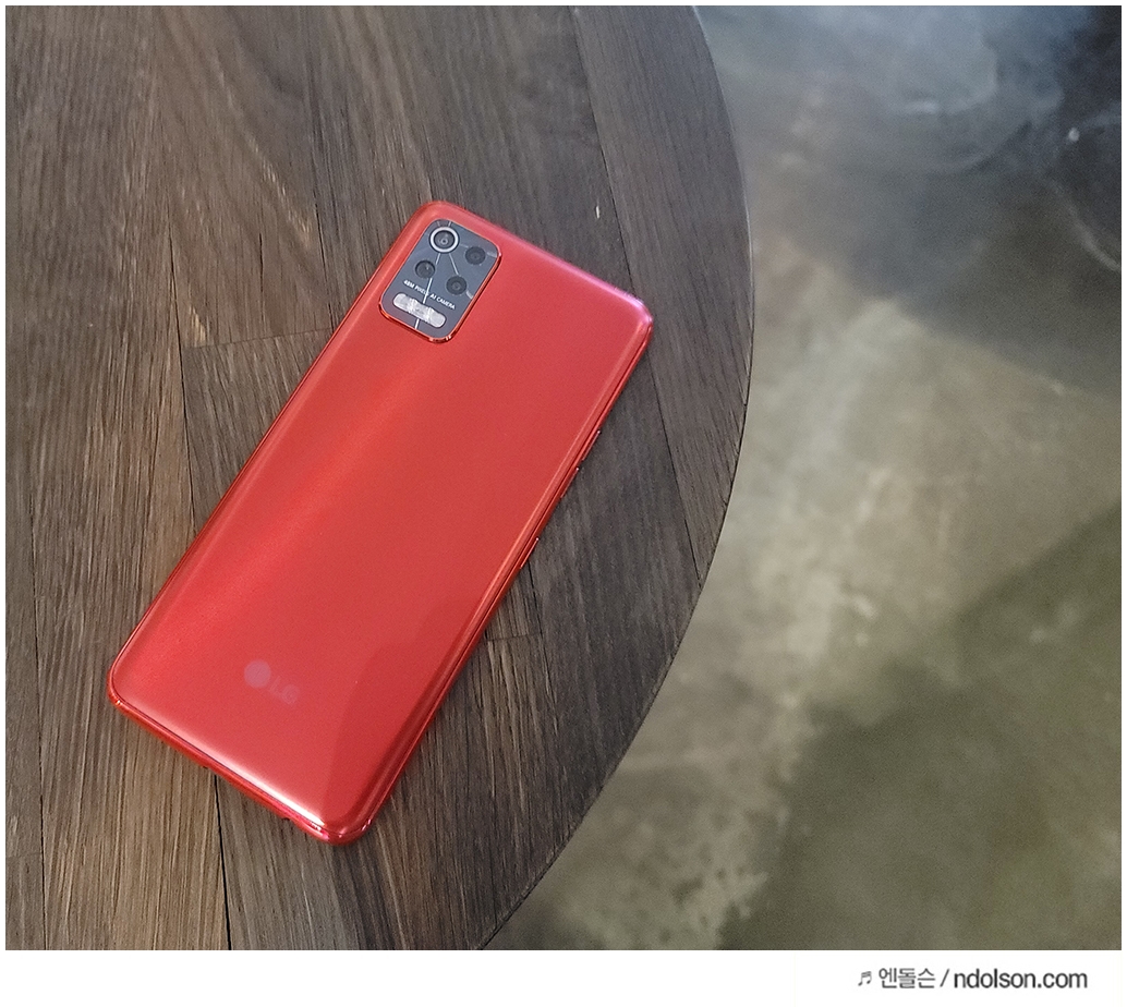 후면의 디자인은 프리미엄 디자인으로 매끈한 느낌을 줍니다. 또 LG Q52에 적용된 실키 레드/화이트 색상으로 즐길 수 있는 느낌이 너무 강렬합니다.