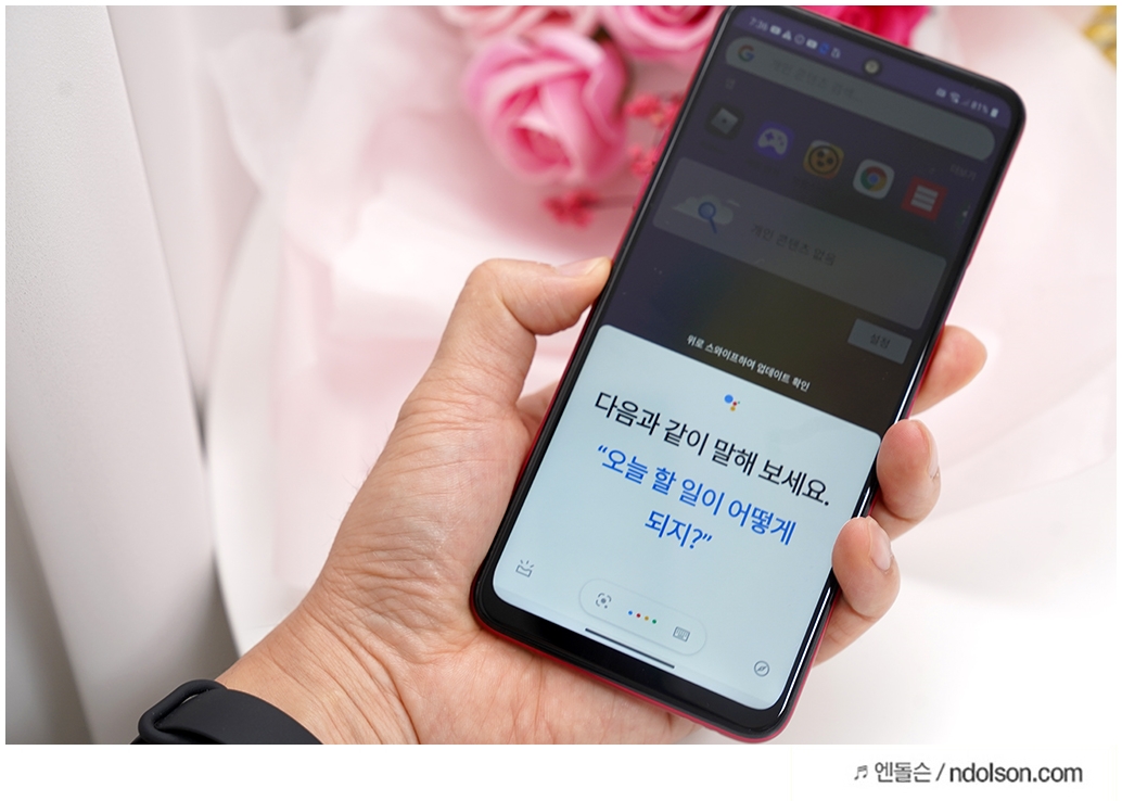 왼쪽에는 구글 어시스턴트 버튼이 위치하고 있습니다. 음성 인식 비서로 말로 OK 구글을 호출할 수 있지만, 빠르게 To Do List를 남기는 리마인드 작업을 하기에 적당합니다.