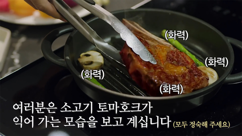 정말 보는 내내 군침이 돌았던 토마호크가 LG DIOS 인덕션에서는 금방 되네요. 고기는 무엇보다 짧은 시간에 강력한 화력이 필요한데 3.0kW 고화력의 인덕션 화구로 요리시간도 단축되고 맛있게 익었네요.