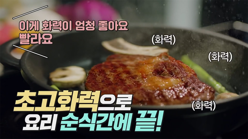 정말 보는 내내 군침이 돌았던 토마호크가 LG DIOS 인덕션에서는 금방 되네요. 고기는 무엇보다 짧은 시간에 강력한 화력이 필요한데 3.0kW 고화력의 인덕션 화구로 요리시간도 단축되고 맛있게 익었네요.