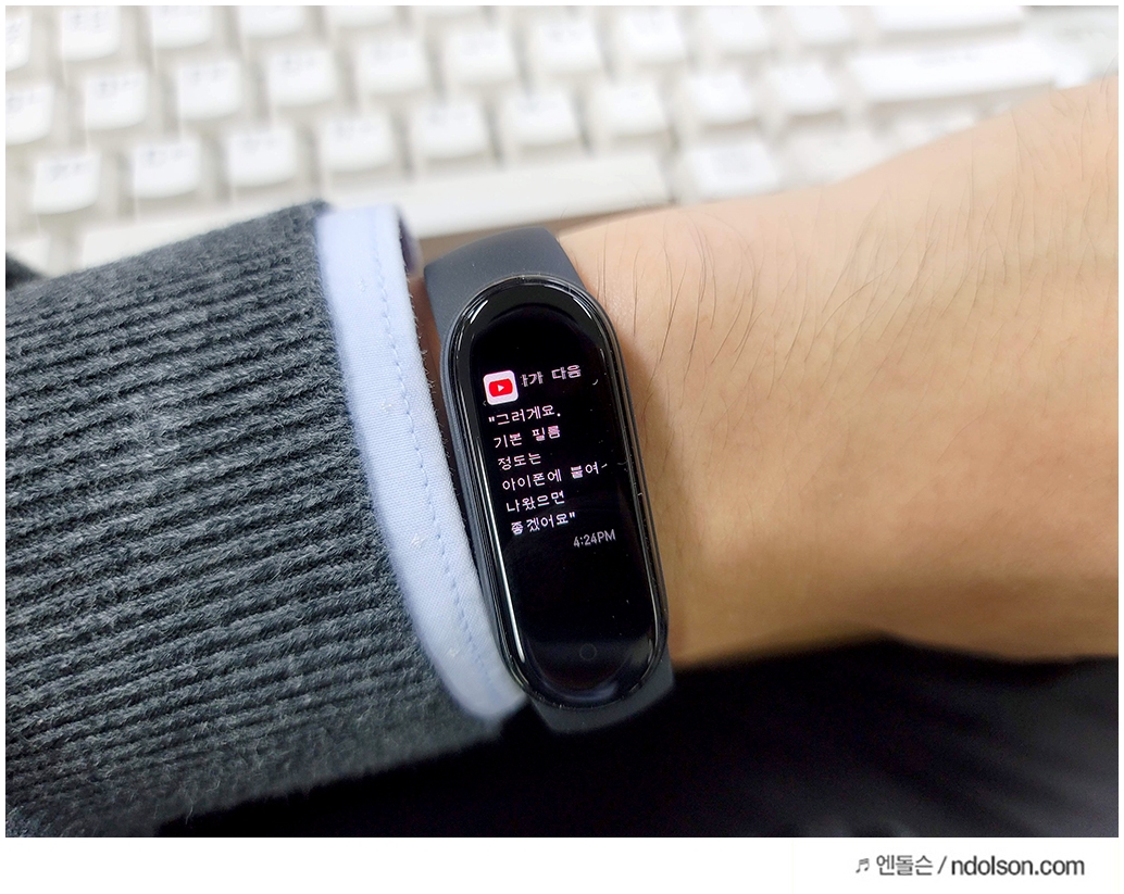 구매전에 고민한 것이 미밴드5에 푸시로 보여지는 메시지가 어떻게 보여지나였는 데요. 익숙해진 지금도 글씨는 조금 작다고 느껴집니다. 하지만 눌러서 쉽게 메시지를 확인할 수 있어 좋은 편입니다.