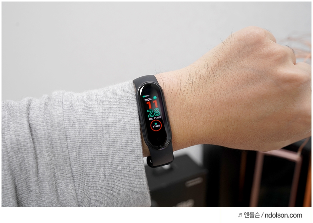 참고로 미밴드5의 화면 크기는 1.1인치 AMOLED 채용. 126*294 해상도를 가지고 있습니다.