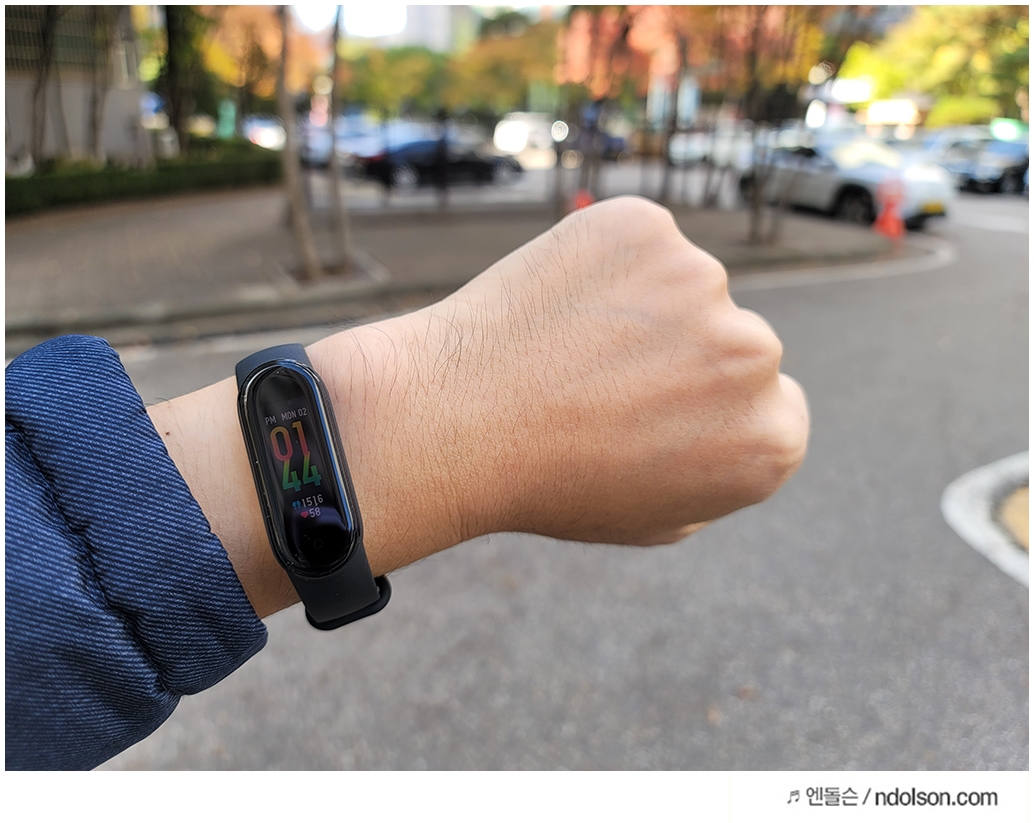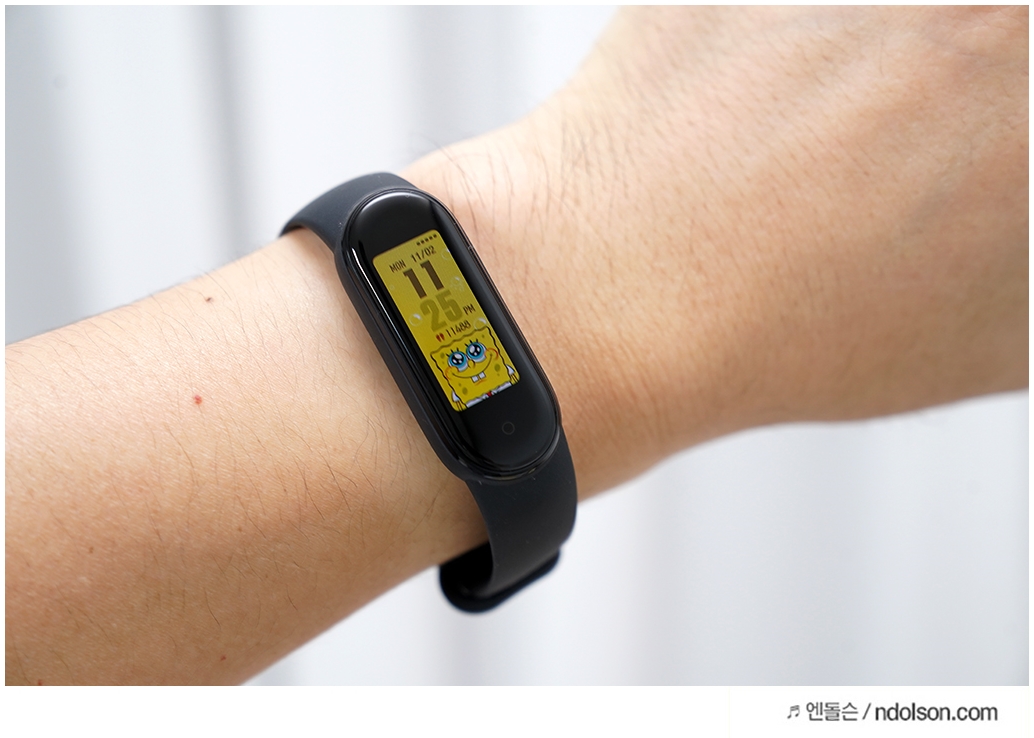 참고로 미밴드5의 화면 크기는 1.1인치 AMOLED 채용. 126*294 해상도를 가지고 있습니다.