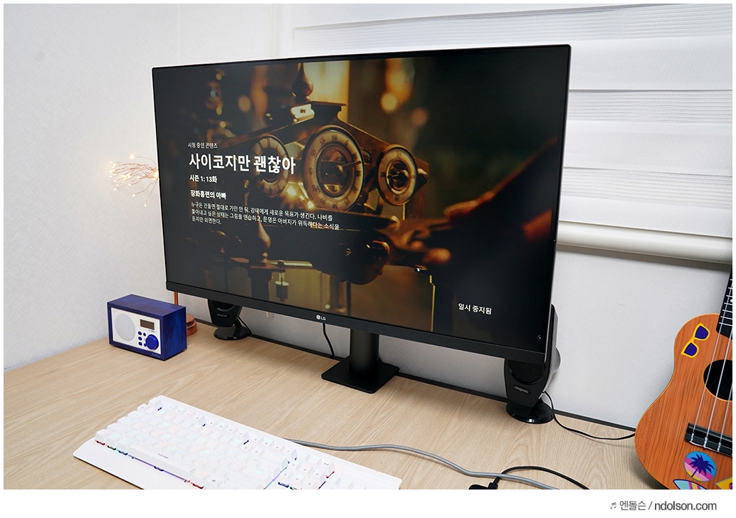 지금까지 LG 32UN880에 대해서 살펴보았는데, 컴퓨터 책상으로 쓰면서도 공간을 적게 차지하고 필요에 따라 모니터를 올리거나 돌려 책상을 보다 넓게 쓸 수 있다는 점이 좋았습니다. 책상 위에서 영상을 제작하는 크리에이터 유튜버인 입장에서 기존 모니터를 들거나 옮기지 않고도 촬영이 용이하다는 점도 장점으로 느껴졌습니다.