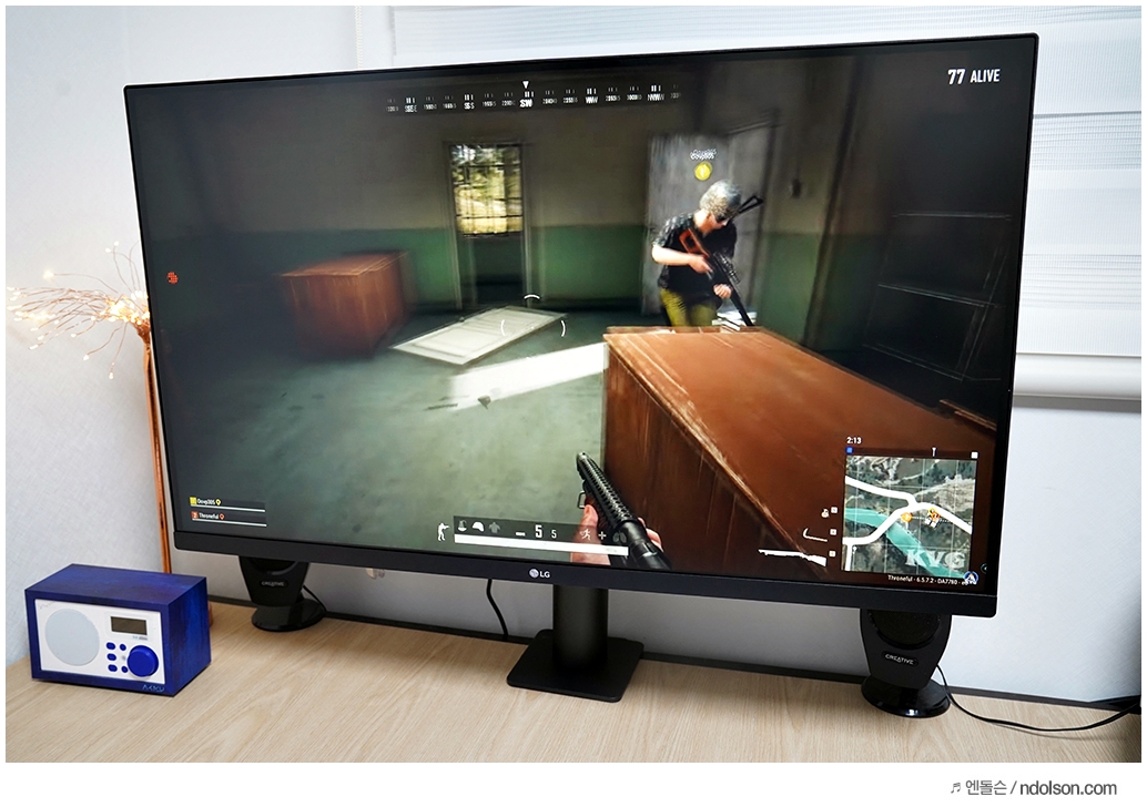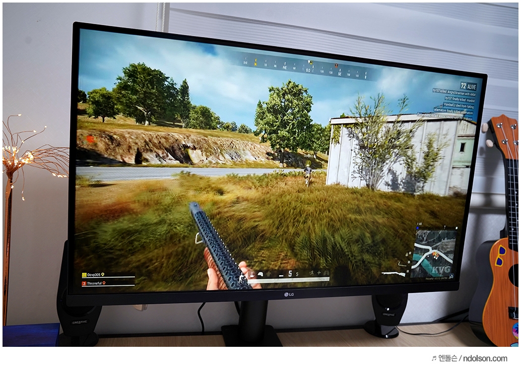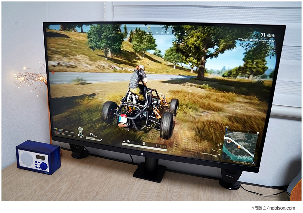 게이밍 기어는 아니지만 프리싱크(AMD Radeon FreeSync)를 지원해서 배틀그라운드, 롤, 오버워치 등의 FPS 게임을 즐기기 적합합니다.