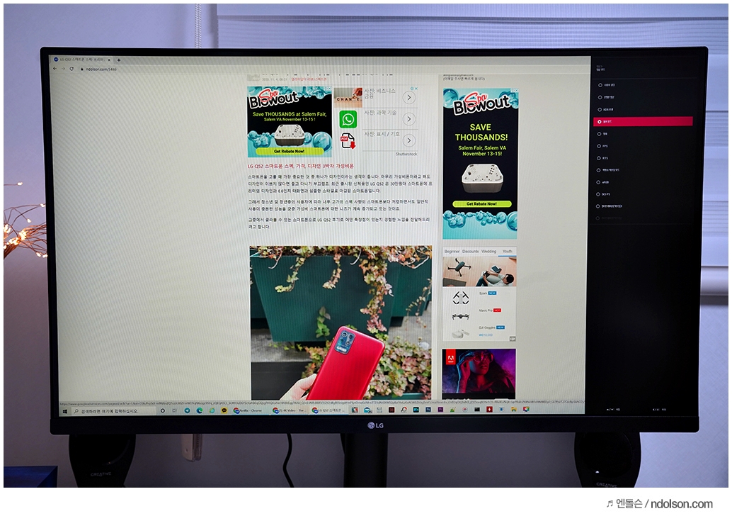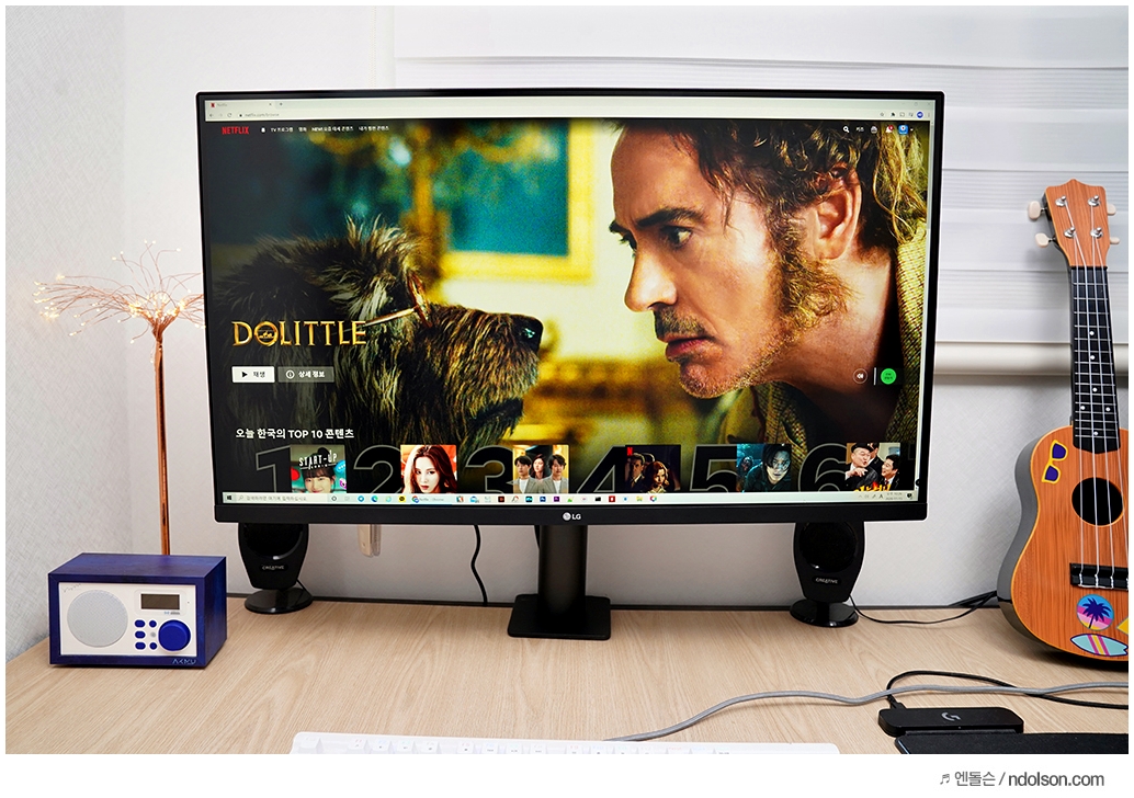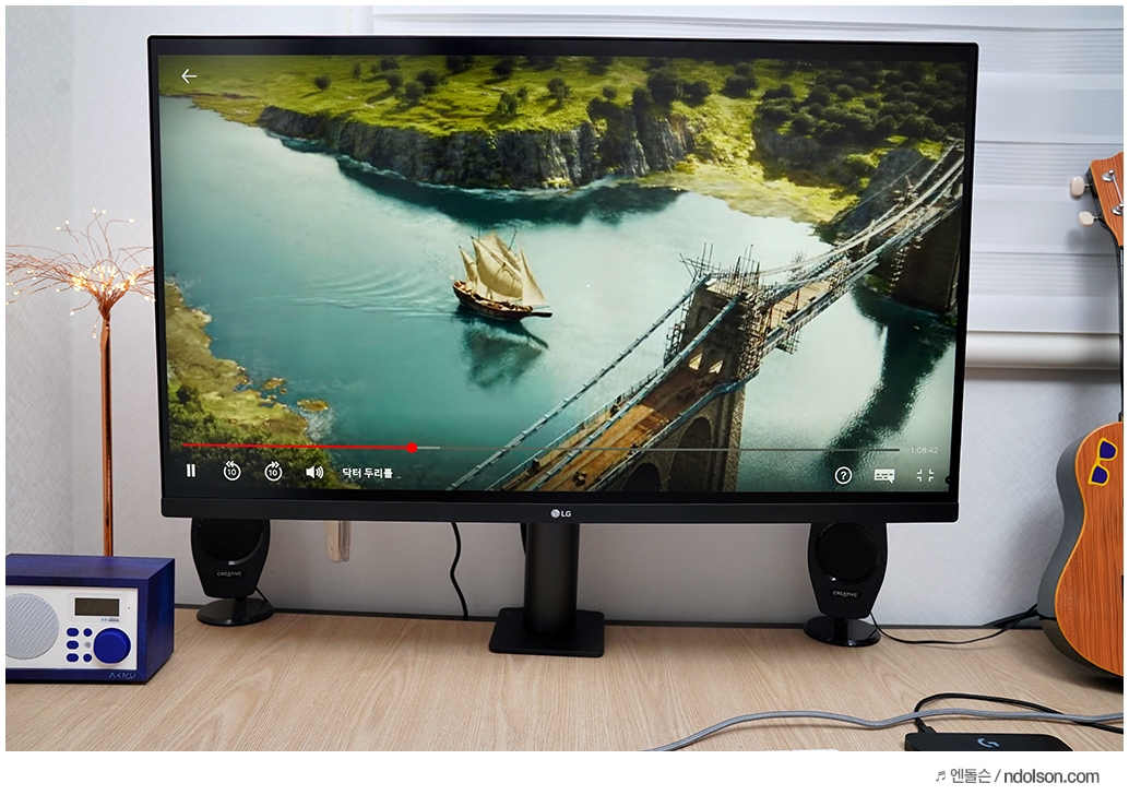 32인치의 대화면 모니터에 UHD(3840x2160) 해상도가 주는 몰입감은 대단합니다. 32 모니터에 FHD 해상도가 아니라서 더욱 많은 윈도우 창을 띄우고도 작업할 때 답답하지 않습니다.