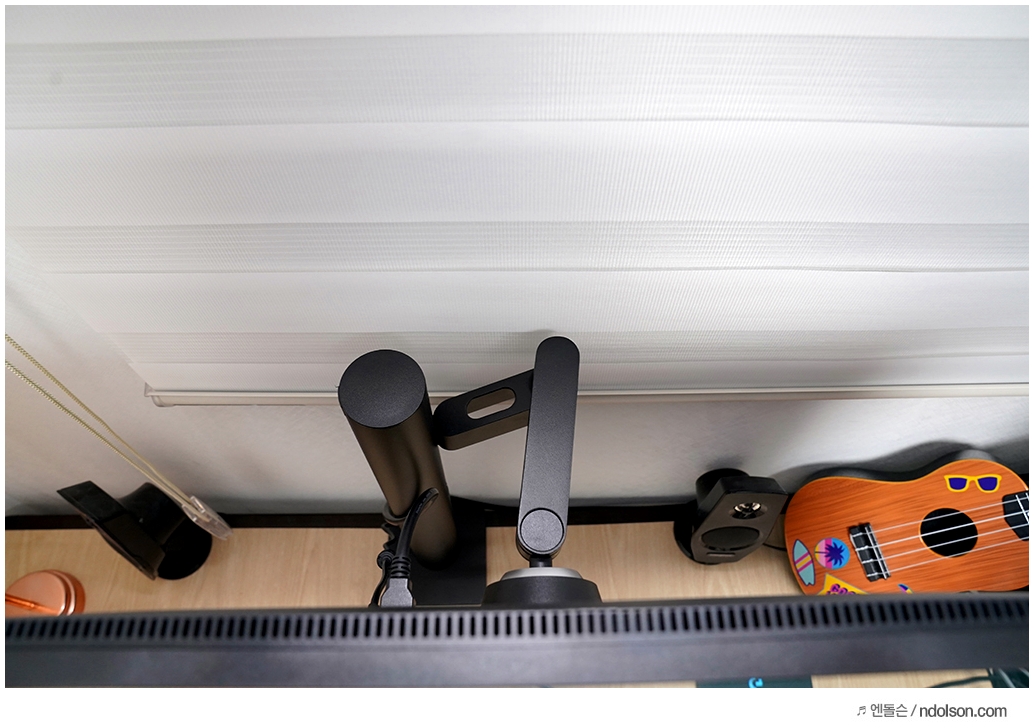 확실히 기존 책상의 스탠드보다 더욱 적은 공간을 차지하여 책상이 넓어 졌습니다. C타입 그립을 통해 안정적으로 고정해 주는 것은 물론 적은 공간만을 차지하기 때문에 책상의 활용성도 높아졌습니다.