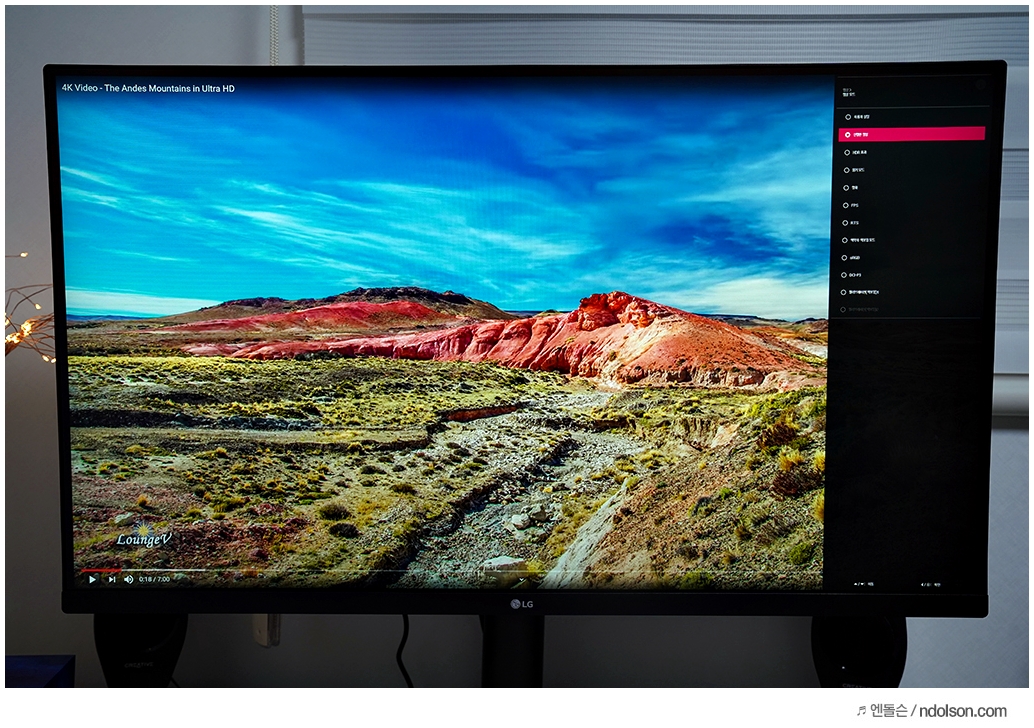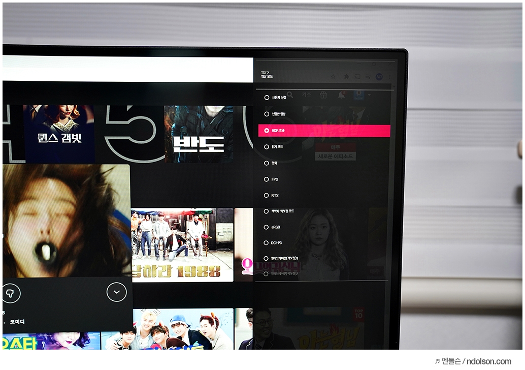 HDR 모니터이기 때문에 영화 감상 시 HDR 모드를 적용하면 더욱 선명한 화면으로 시청이 가능합니다.