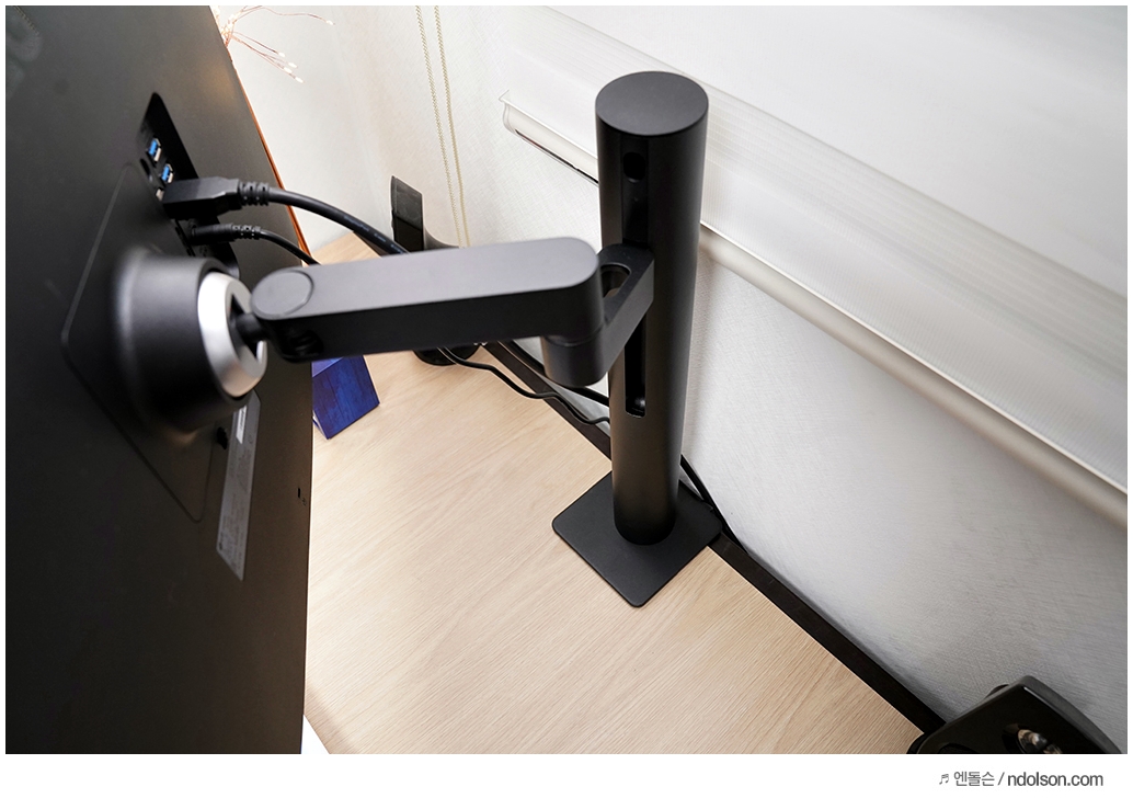 그동안 다양한 모니터들을 사용해 왔는데, 틸트와 스위블, 높낮이 조절 등을 제외하고는 조절 가능한 범위가 제한적이라 별도의 모니터 암을 구매하여 사용했었습니다. 무언가 편의성도 있지만 추가적인 가격과 기본 스탠드는 공간을 많이 차지하여 불편함이 컸습니다.