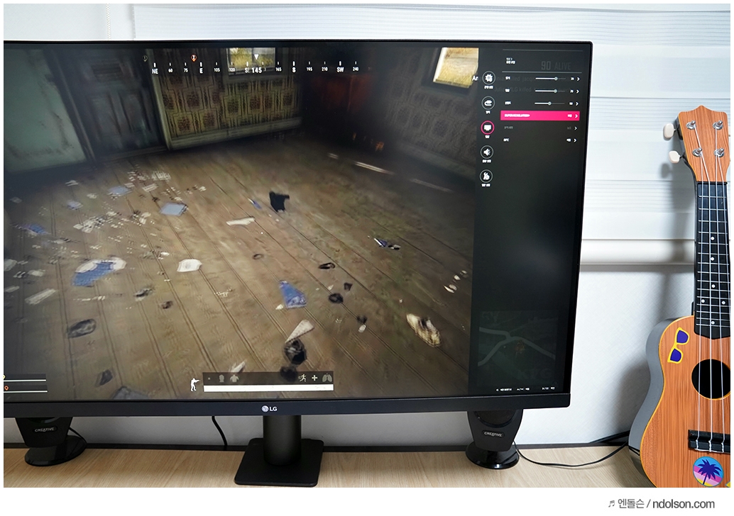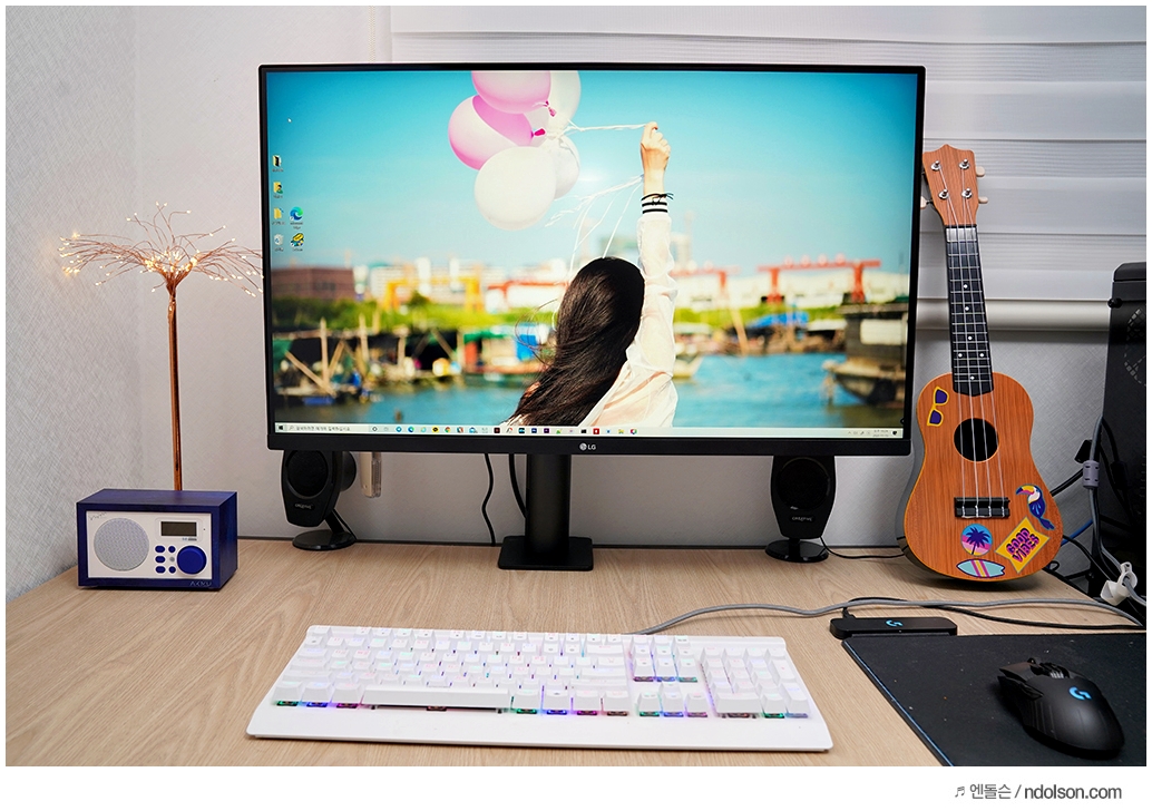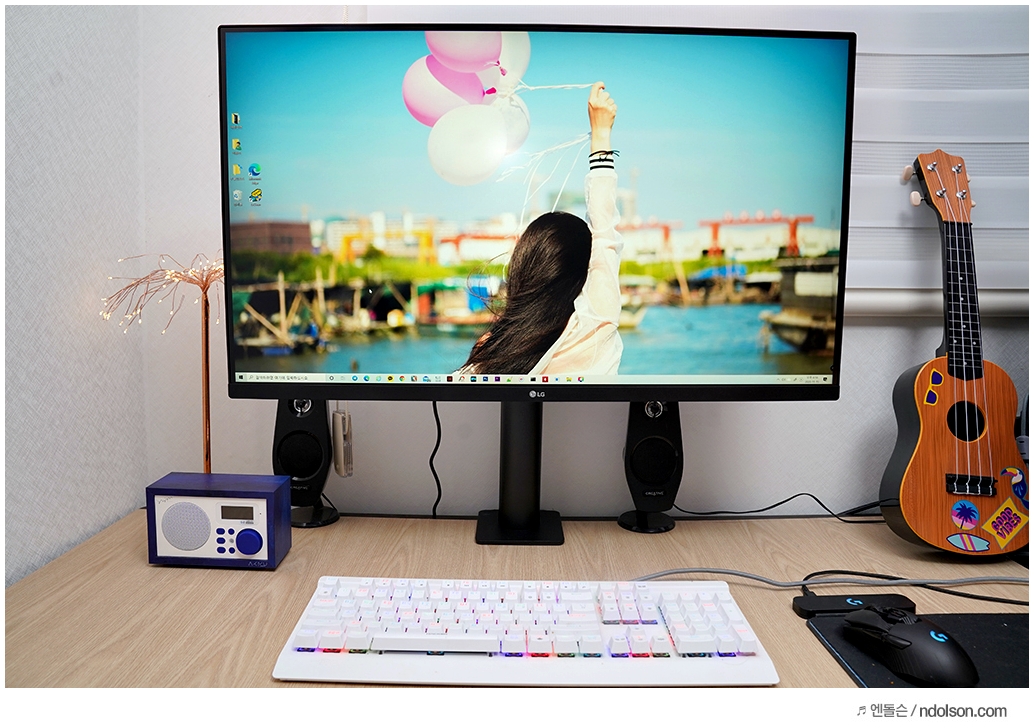 32인치의 대화면 모니터에 UHD(3840x2160) 해상도가 주는 몰입감은 대단합니다. 32 모니터에 FHD 해상도가 아니라서 더욱 많은 윈도우 창을 띄우고도 작업할 때 답답하지 않습니다.