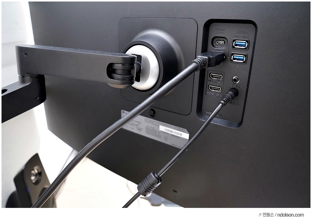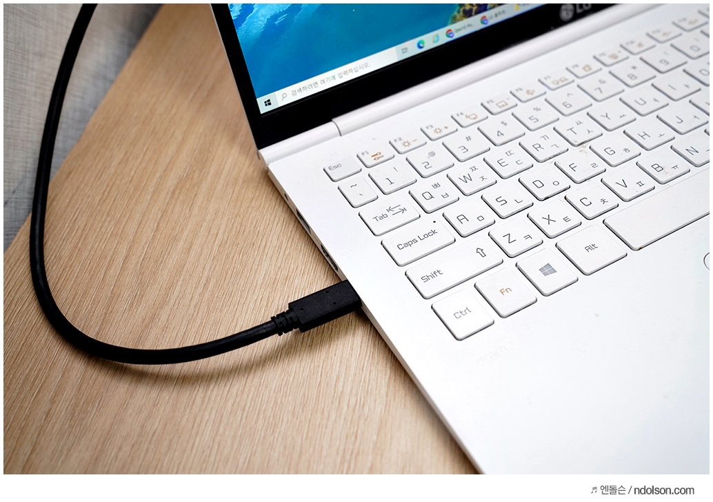 USB-C 단자는 60W 를 지원해서 노트북 및 스마트폰 충전도 가능하며 데이터 전송도 가능합니다. LG 그램 노트북과 모니터 USB-C 단자를 연결하면 바로 듀얼 모니터로 연결되어 화면이 공유됩니다.
