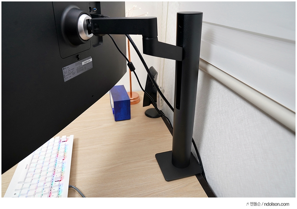 그동안 다양한 모니터들을 사용해 왔는데, 틸트와 스위블, 높낮이 조절 등을 제외하고는 조절 가능한 범위가 제한적이라 별도의 모니터 암을 구매하여 사용했었습니다. 무언가 편의성도 있지만 추가적인 가격과 기본 스탠드는 공간을 많이 차지하여 불편함이 컸습니다.