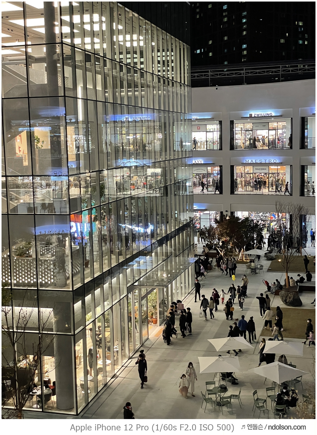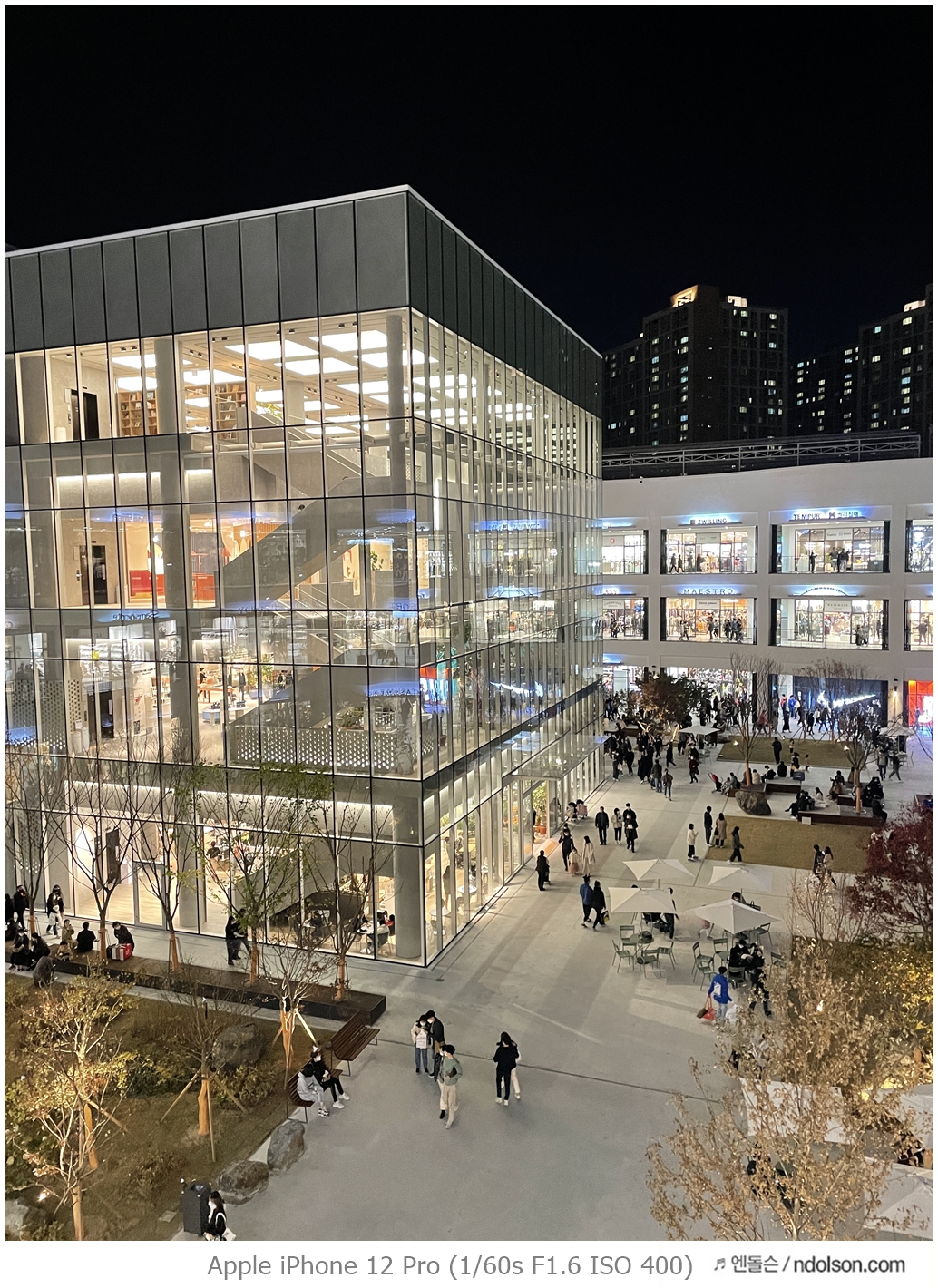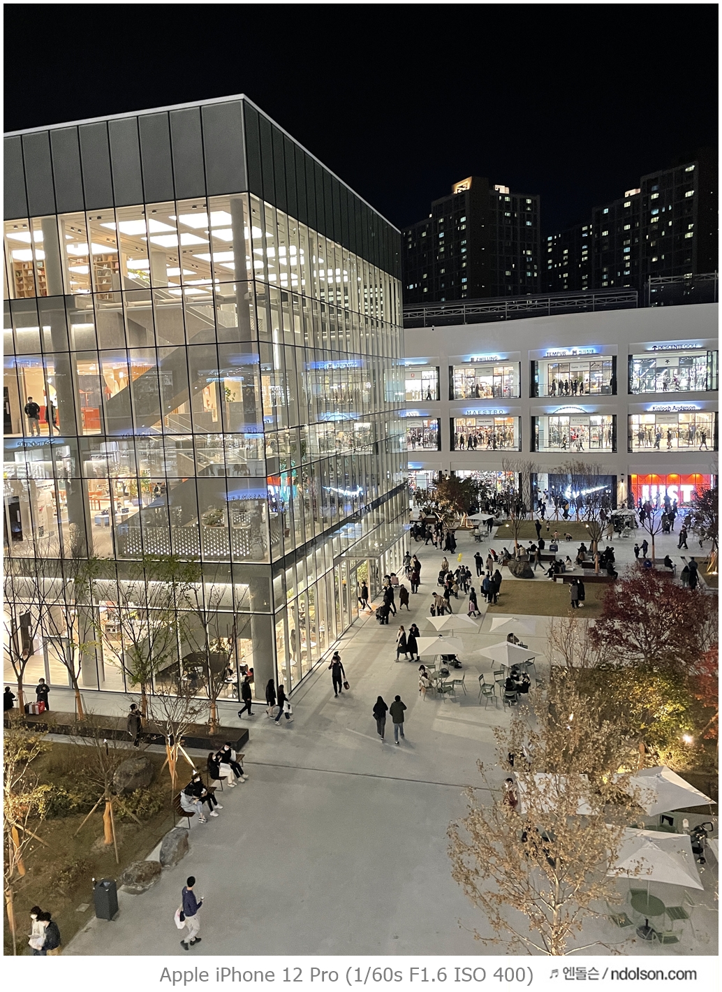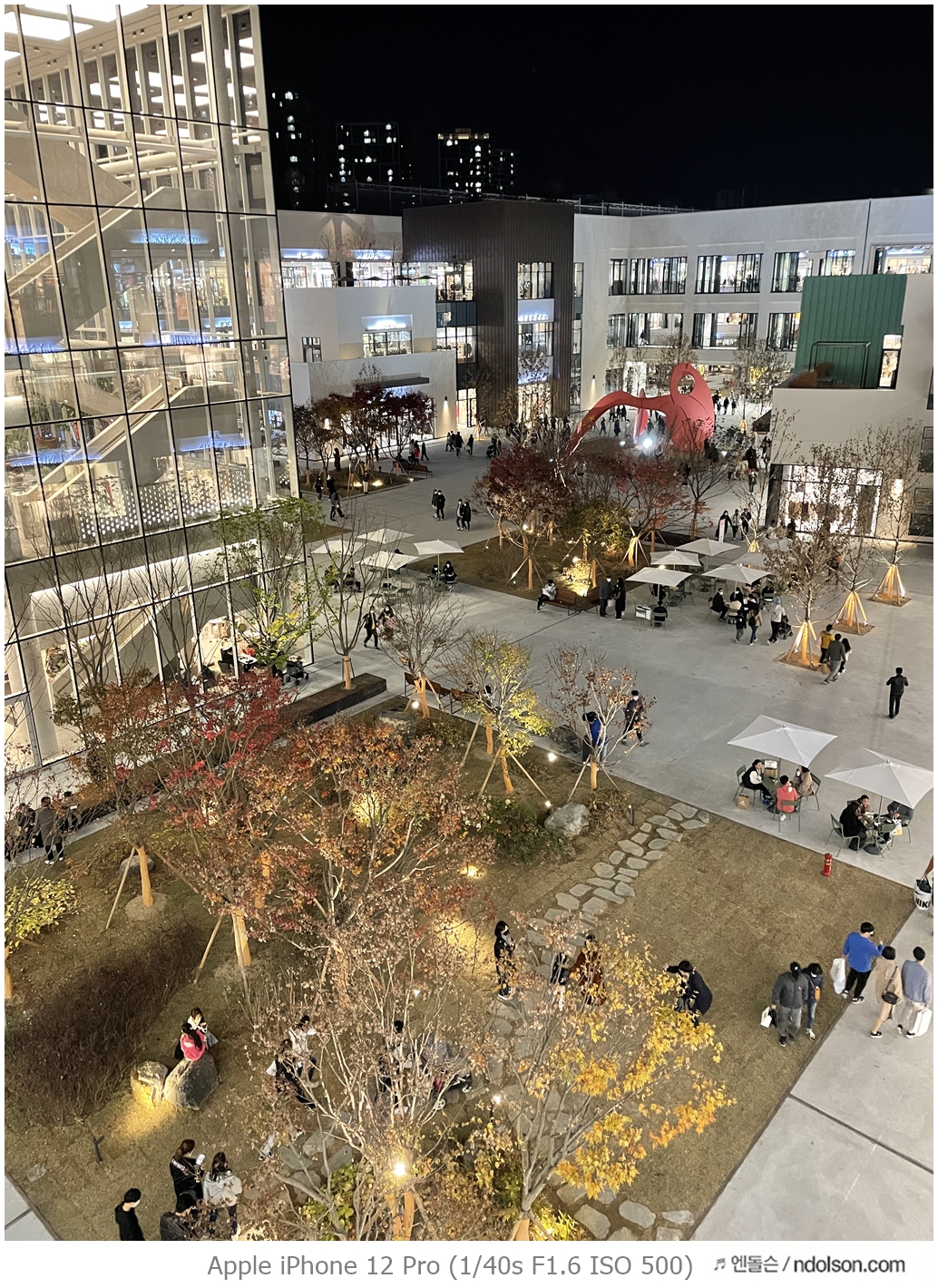 F값이 1.6 인 아이폰12 프로와 달리 갤럭시노트20 울트라는 F값 1.8 인 것을 봐도 스펙상에 아이폰12 프로가 조금 더 우위에 있는 카메라 렌즈라는 것을 알 수 있습니다. 상대적으로 더 적은 빛으로 충분히 좋은 사진을 뽑을 수 있어 ISO를 많이 높이지 않아도 노이즈가 적은 사진을 뽑을 수 있는 것이죠.