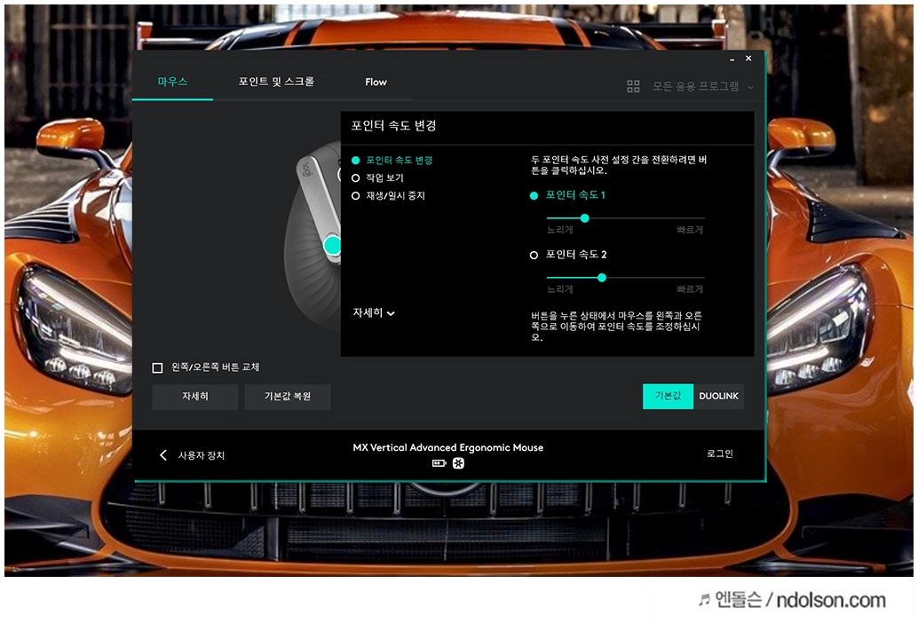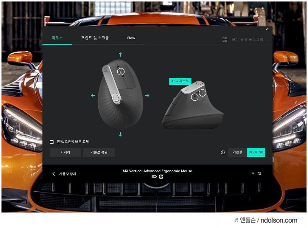 로지텍의 Options 소프트웨어의 사용법을 통해서 상세한 설정을 해보시면 편리합니다. Flow로 최대 3대의 PC를 하나의 마우스로 넘나들면서 관리할 수 있어 편리합니다.