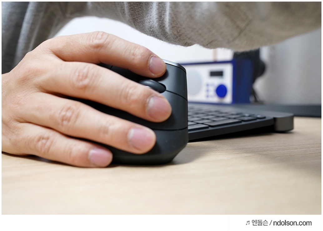 하지만 주변을 조금만 둘러보면 로지텍 버티컬 마우스를 사용하시는 분이 꽤나 있을 겁니다. 이유는 인체공학적인 설계로 손목이 아프지 않고 장시간 마우스 조작이 편하기 때문인데요.