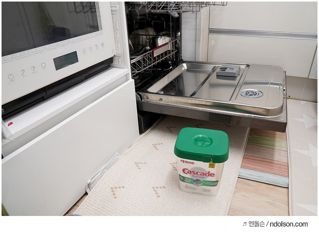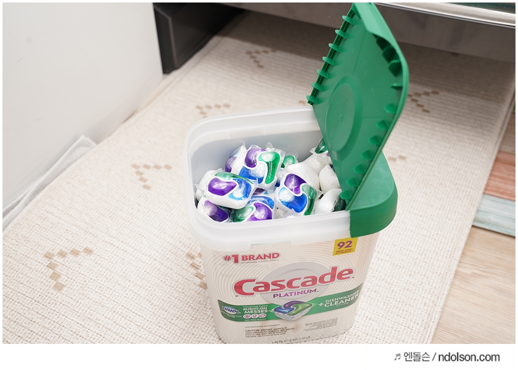 캐스케이드 플래티넘 식기세척기 캡슐 세제를 구매하고 만족스러운 것은 대용량이라는 것과 세척력이 엄청나게 강력하다는 것입니다. 또 향기도 나던데, 뽀독 뽀독하게 잘 닦여서 좋았습니다.