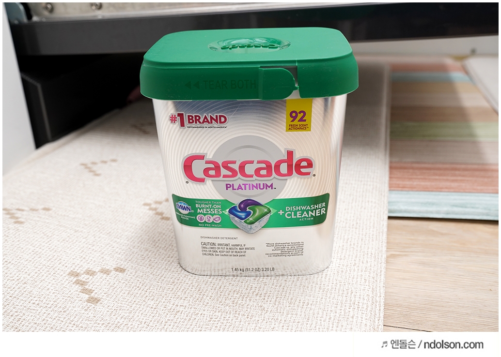캐스케이드 플래티넘 식기세척기 캡슐 세제를 구매하고 만족스러운 것은 대용량이라는 것과 세척력이 엄청나게 강력하다는 것입니다. 또 향기도 나던데, 뽀독 뽀독하게 잘 닦여서 좋았습니다.