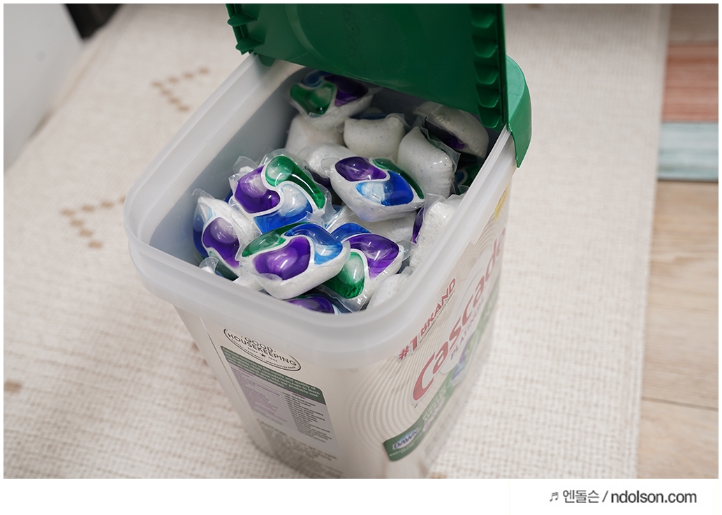 6인용 식기세척기를 사용하면서 쓰기 좋은 캡슐 세제를 구매하였습니다. 북미 1위 브랜드인 캐슽케이드 식기세척기 캡슐 세제인데 후기가 좋아서 구매하였습니다.