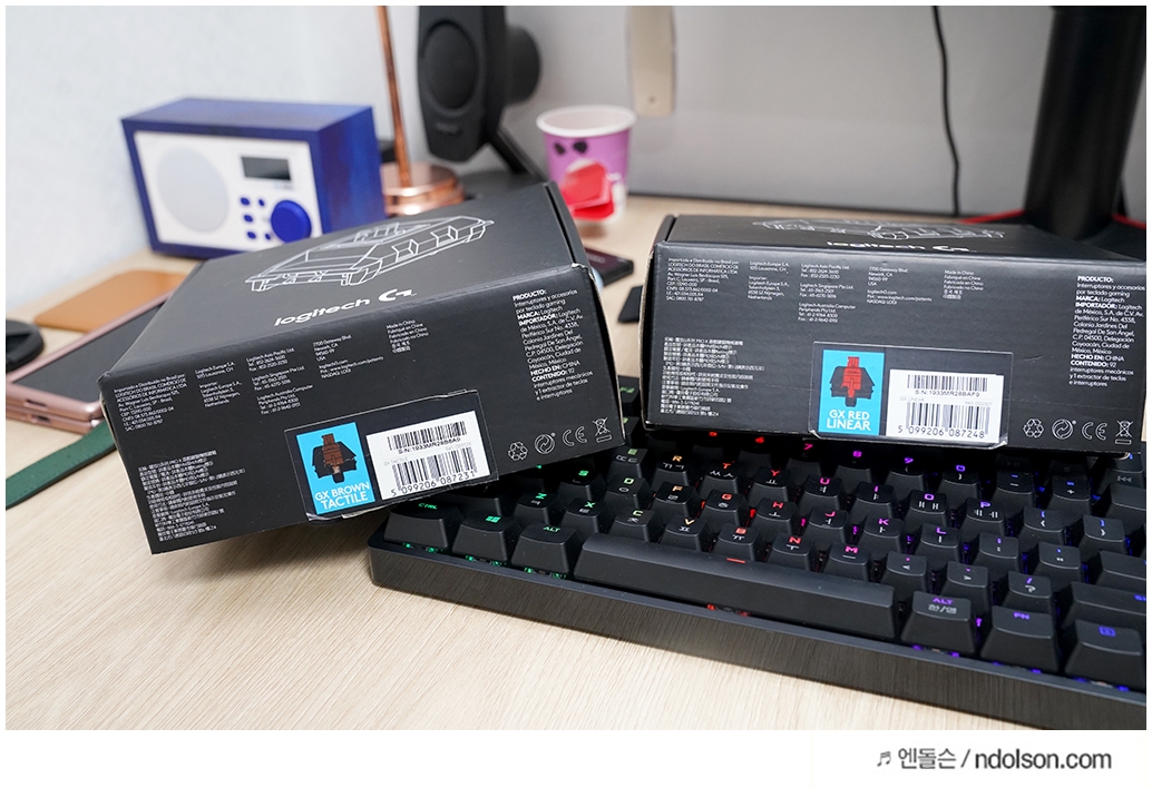 로지텍 GX Blue 클릭키가 기본 축으로 되어 있는 데, GX Red 리니어, GX Brown 택타일 축으로 바꾸어 볼 겁니다. 로지텍 키보드는 쉽게 청축, 적축, 갈축으로 교체가 가능하다는 것이 큰 장점인데요.