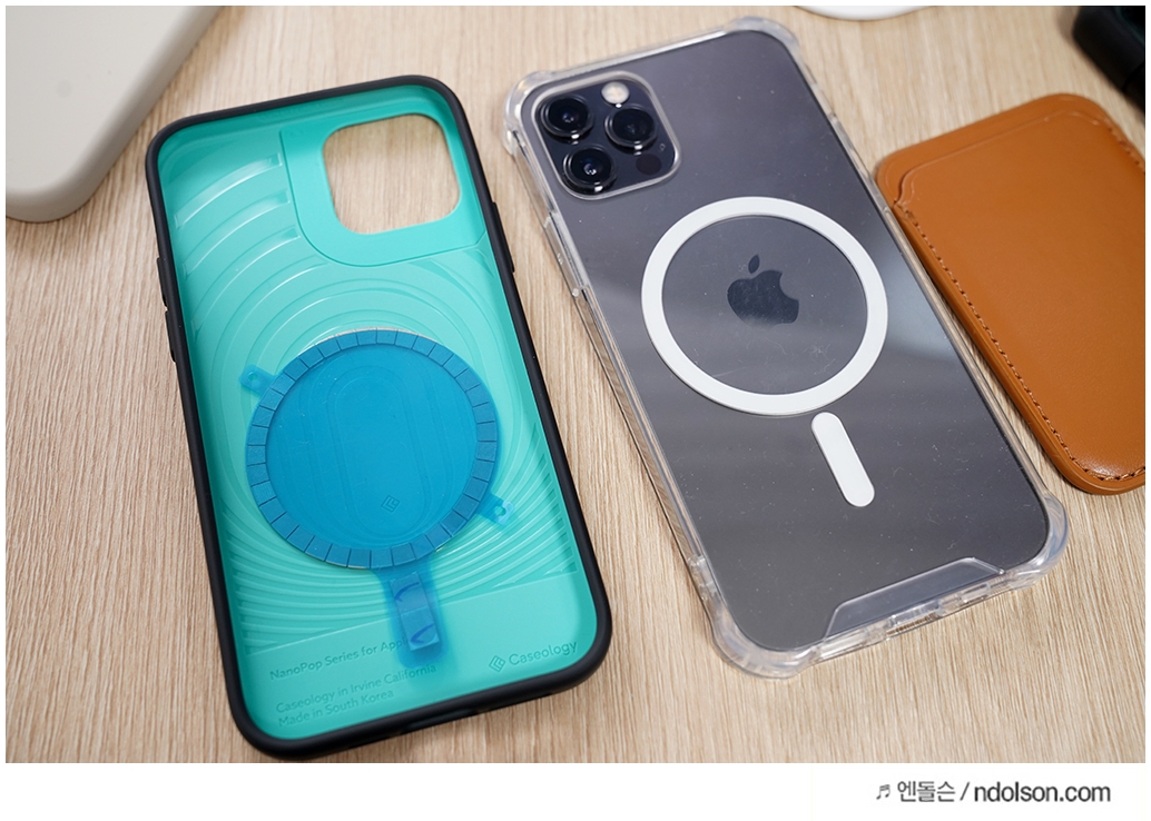 맥세이프 전용 케이스가 아니라서 아쉬웠던 부분을 해결 할 수 있다는 점은 좋지만, 단점이라면 케이스 재질에 따라 자력이 약해지면 카드지갑이 붙지 않는 경우도 있더군요.