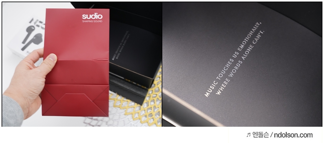 수디오 니오 패키지를 개봉하여 보았습니다. 정말 선물 받은 느낌을 받은 건 수디오 무선이어폰을 개봉할 때 느껴지는 것 같습니다. 개별 선물 종이상자도 있어 너무 좋고 음악에 대한 애정도 느낄 수 있습니다.
