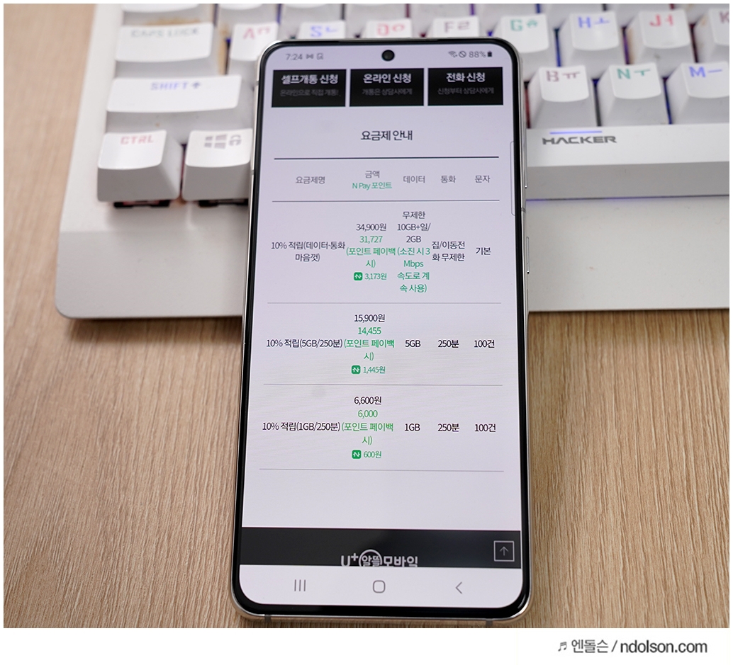 믿고 구매할 수 있는 자급제 구매로 편하게 구매하고 혜택을 받고, 이통사 대비해서 반값의 U+알뜰모바일의 요금제를 적용해서 쓰는게 요금 같이 통신비 아끼기 좋은 방법입니다.