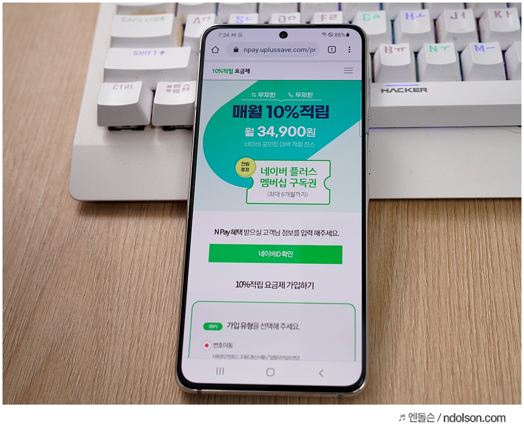 제가 추천드리고 싶은 요금제는 유알모와 네이버가 제휴한 10%적립 요금제입니다.