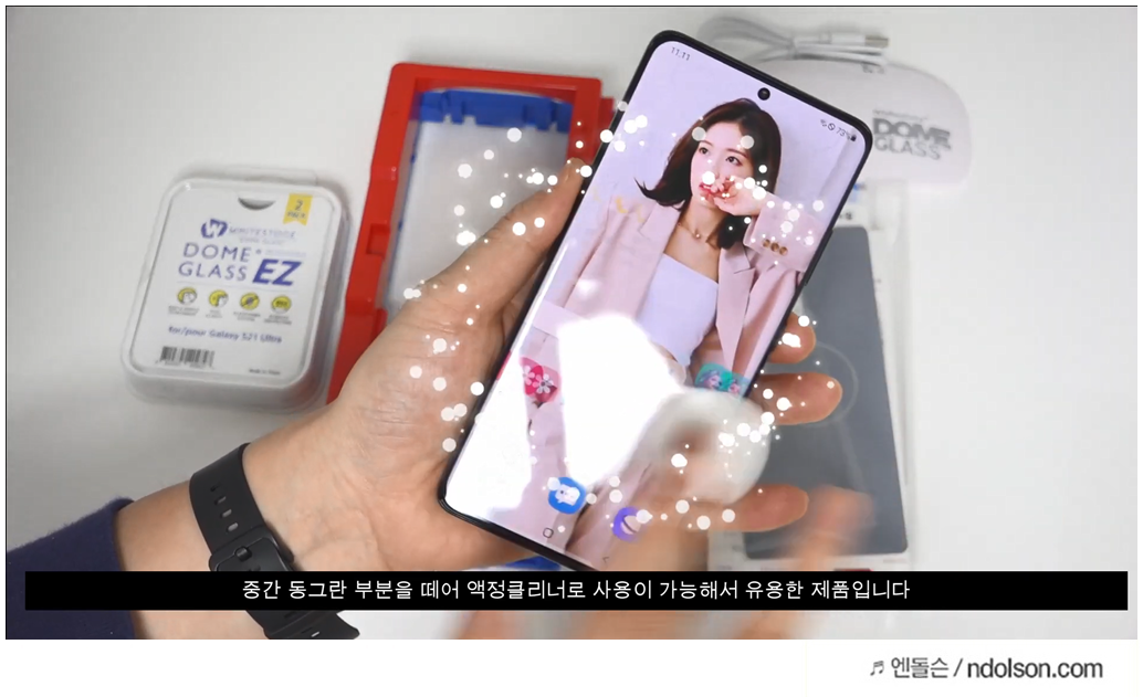 갤럭시S21 울트라 강화유리 보호필름 돔글라스 부착 방법