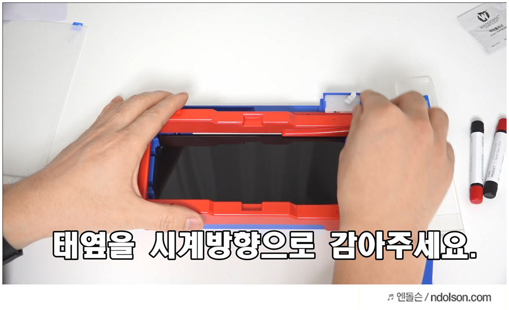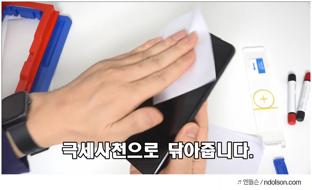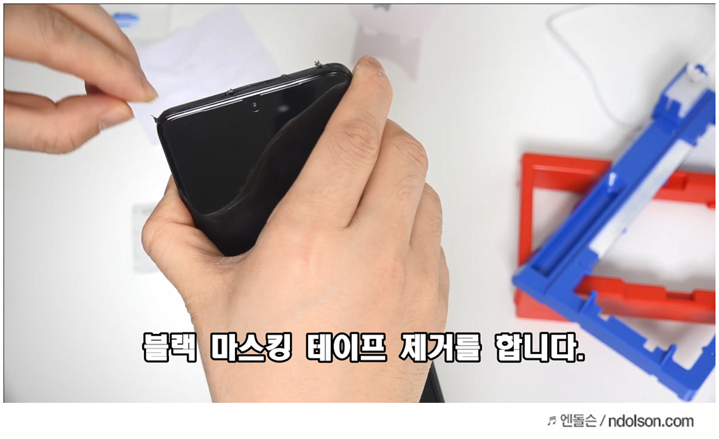 블랙 마스킹 테이프를 제거합니다. 액정 클리너와 극세사천으로 깨끗히 닦아 줍니다.
