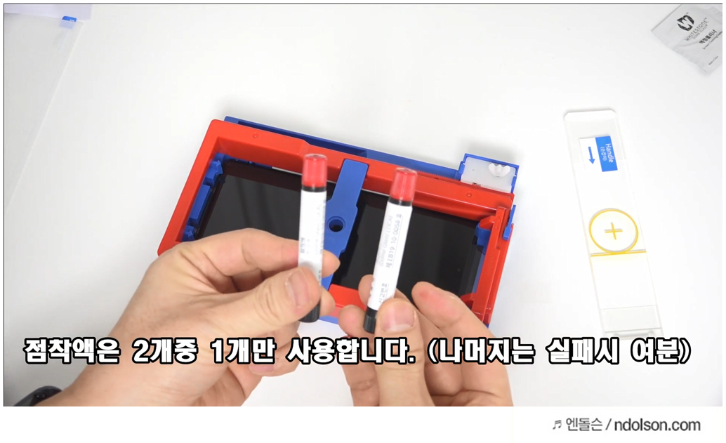 점착액은 2개 중 1개만 사용합니다. 혹시 실패하면 또 사용할 수 있는 여분입니다.