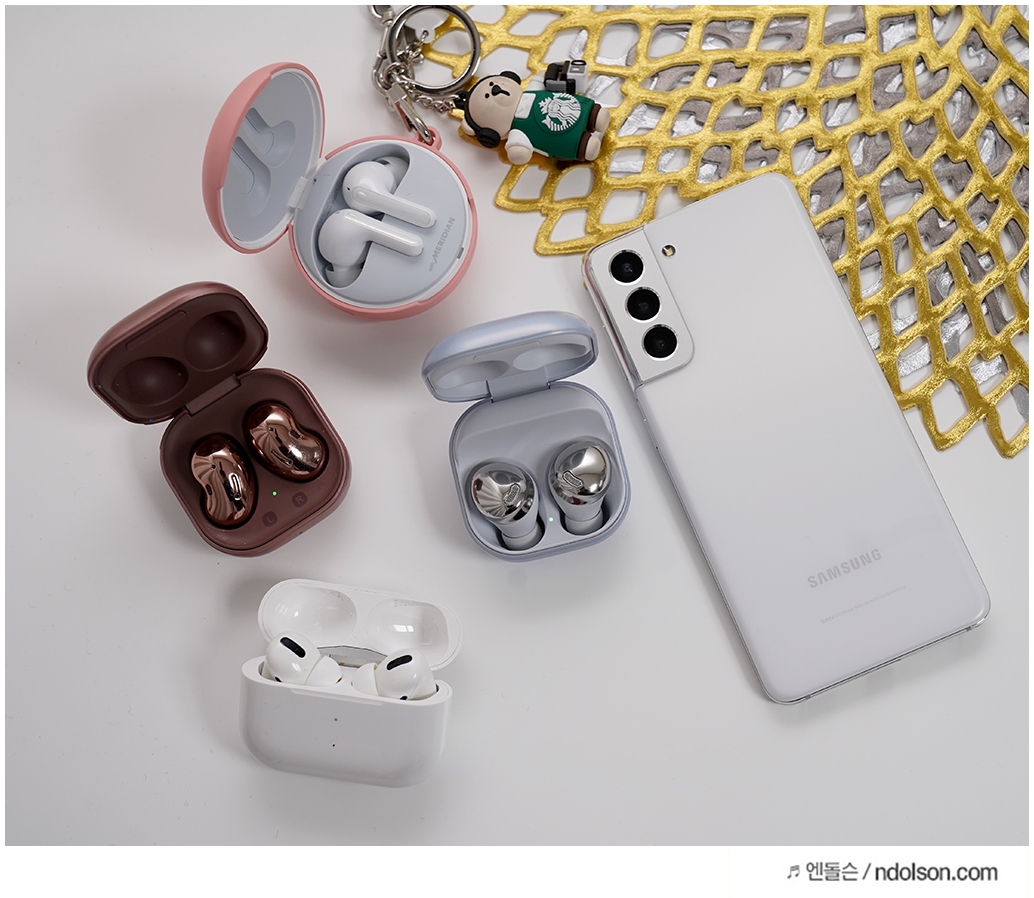 애플 에어팟 프로, LG 톤프리와 함께 오픈형 노이즈 캔슬링을 갖춘 갤럭시 버즈 라이브는 귀가 너무 편해서 애용하였는 데 더 강력한 커널형과 인공지능 기능으로 만족감을 주는 갤럭시 버즈 프로(Galaxy Buds Pro)는 무엇보다 발전한 성능이라고 볼 수 있습니다.