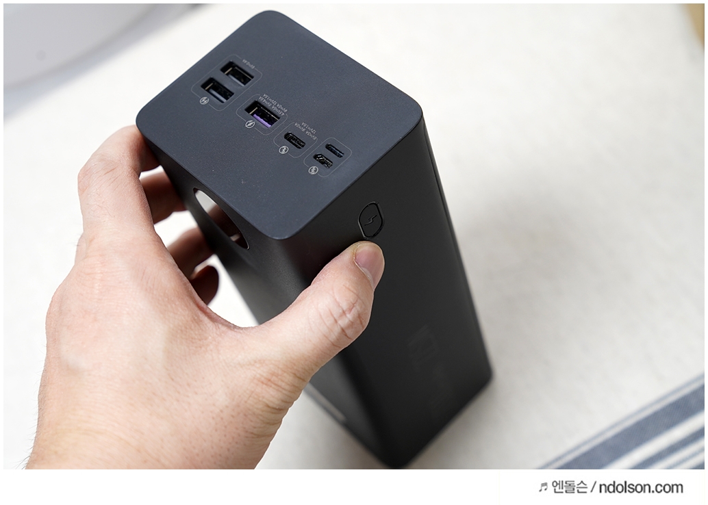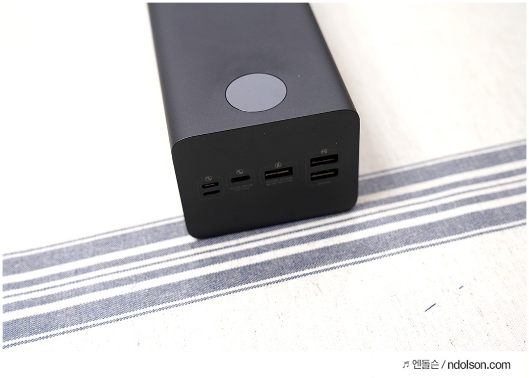 인터페이스는 QC+PD 충전을 지원합니다. 하지만, USB-C Type 의 충전 단자가 1개라는 점은 아쉽습니다. 어느 케이블을 많이 가지고 있냐의 차이일 수 있습니다.