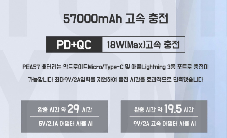 그럼에도 불구하고 땡기는 것은 엄청난 57000mAh 의 대용량 배터리라는 점입니다. 그것 때문에 샀어요.