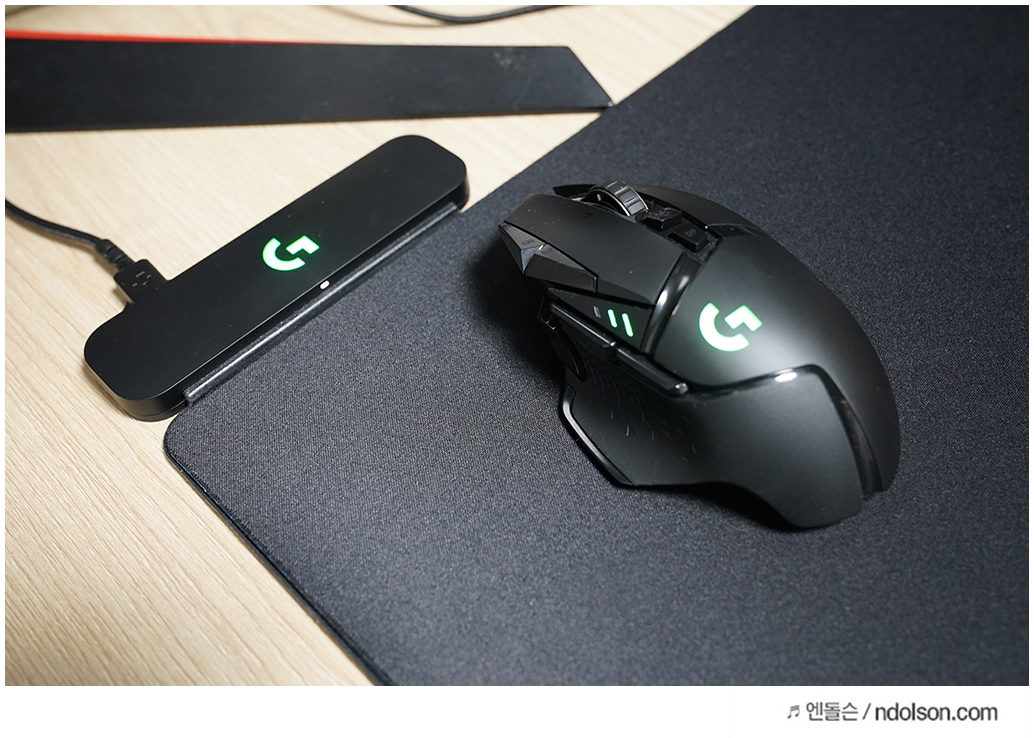 또 무제한으로 충전되는 파워플레이 위에서는 배터리 걱정도 없습니다. 매번 충전에 신경쓰다가 로지텍 파워플레이를 구매하고 가장 만족스러운 부분이었는데요. 이제 올려만 두어도 마우스가 무선 충전이 가능합니다.