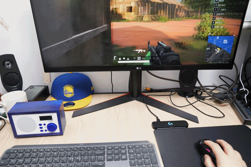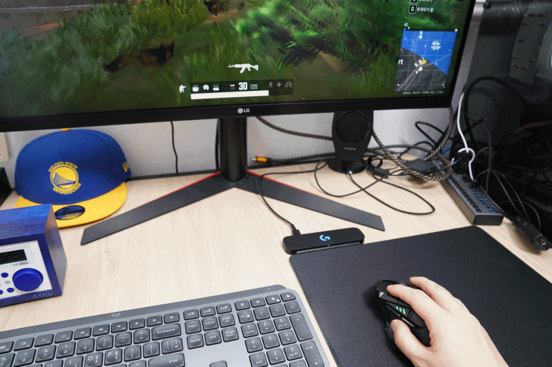 로지텍에서 자체개발한 HERO센서로 차세대 25K 센서로 가장 높은 최상위 스펙이 탑재되었습니다. 배틀그라운드 게임을 즐기면서 G502 무선 마우스를 컨트롤해보는 데, 정밀한 컨트롤과 빠르게 게임 진행이 가능했습니다.
