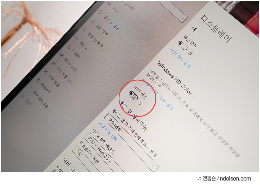 윈도우에서 HDR 사용을 ON/OFF 할 수 있으며 모니터에서도 빠르게 HDR 효과를 지원합니다.