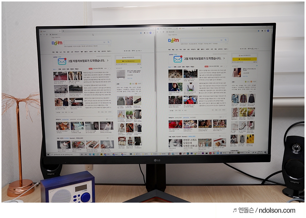 32인치 모니터는 화면 분할을 해서 많이 쓰게 됩니다. 비대면이라 팀즈(Teams)와 업무용 아웃룩(Outlook)을 웹페이지로 켜서 이분할 해보았습니다. 작업하기 적당한 화면비율을 보여줍니다.