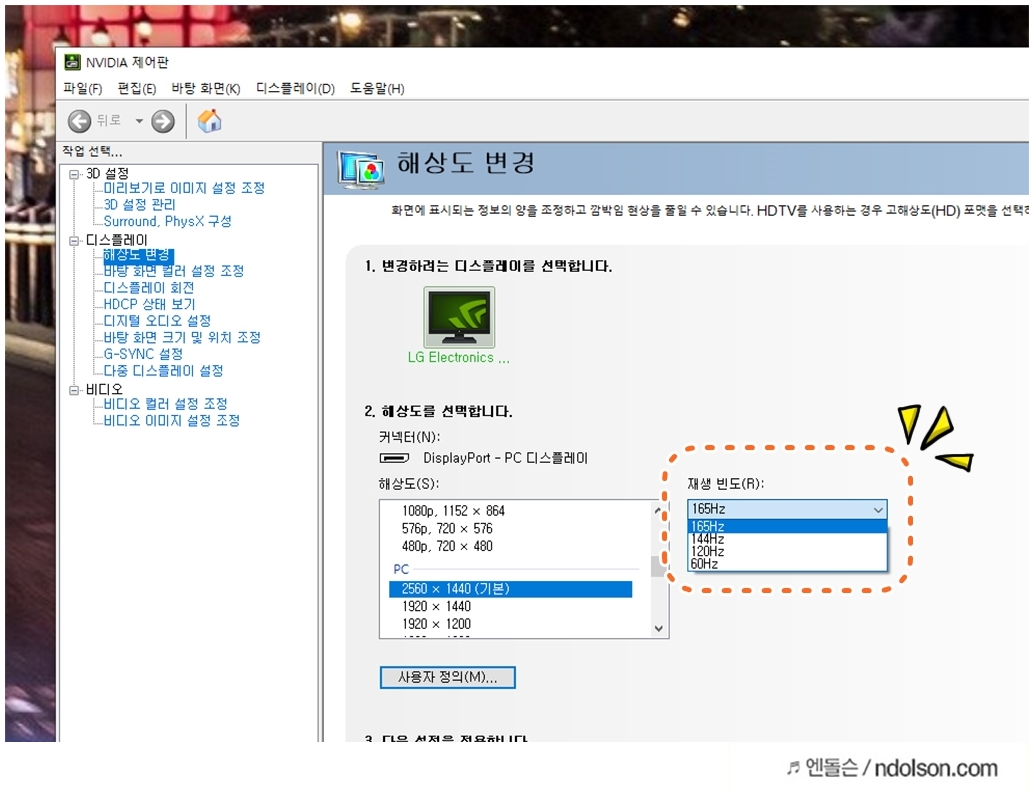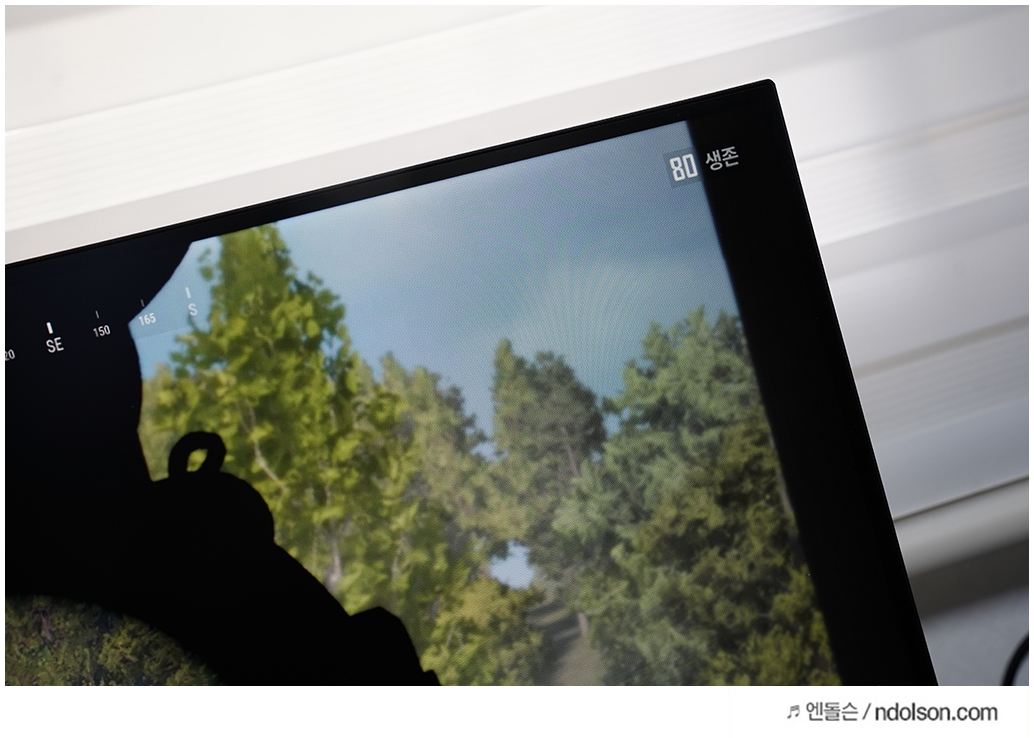 배틀그라운드 같은 게임의 경우 화면 전환이 빨라 마우스를 움직여 좌우를 빠르게 확인하는데, 165Hz의 고성능 모니터의 경우는 60Hz 대비하여 2배 이상의 매끄럽게 움직이는 캐릭터를 볼 수 있기 때문에 게임이 제공하는 사실감과 몰입도가 더 뛰어납니다.