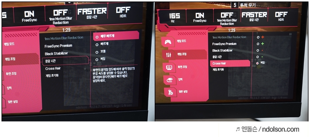 또 게임을 하면서 빠르게 움직일 때 잔상 등이 발생할 수 있는데, 1ms MBR(Motion Blur Reduction) 기능을 설정해두면, 모션 블러 최소화가 가능해 선명한 화면을 볼 수 있습니다.