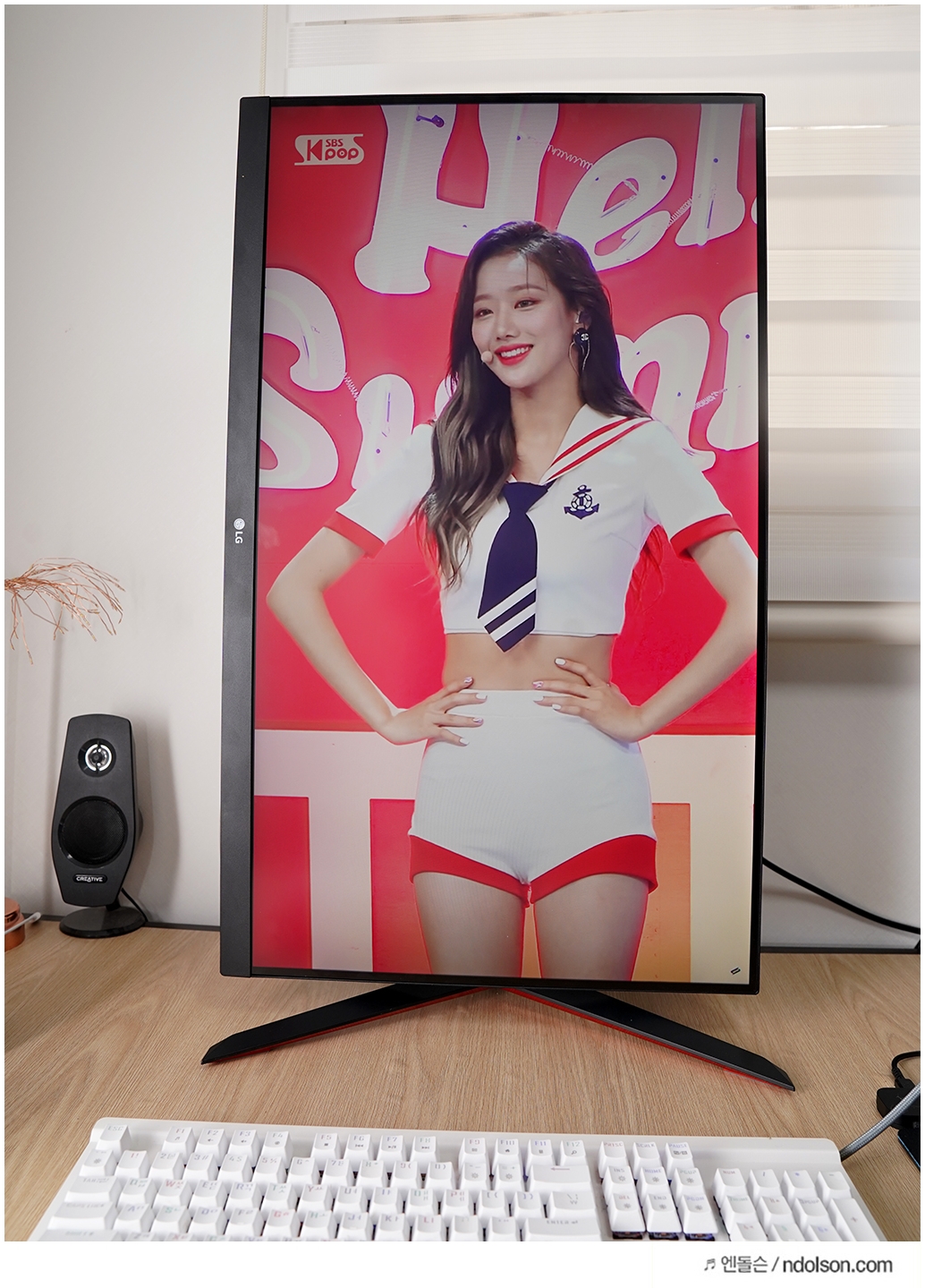 세로 모니터로 32인치 모니터를 쓴다면? 요즘 세로 직캠 영상도 많고 스크롤이 긴 문서나 웹페이지도 보기 편합니다.