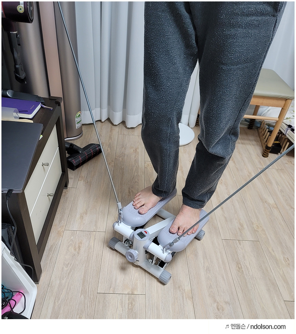 요즘 홈트에 빠져서 실내자전거랑 스텝퍼 샀는데 생각보다 스텝퍼가 하드코어한 운동인지 처음 알았습니다. 주변에서 들은 스텝퍼 운동보다 훨씬 만족감이 좋았습니다.