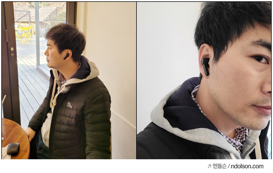 실제 느껴지는 음향은 360도 서라운드에 귀에 착용시 답답하지 않으면서 가벼운 이어폰이라고 느껴졌습니다.