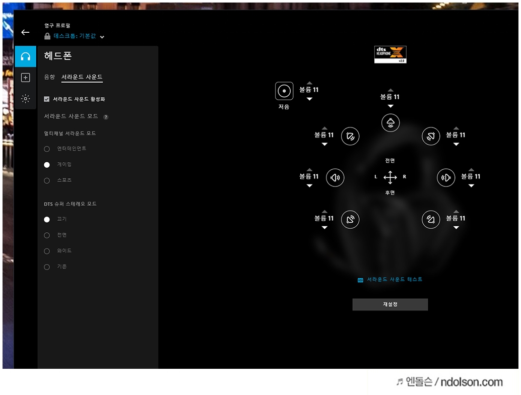 크게 다가오는 것은 게임할 때 차세대 DTS 7.1 서라운드 사운드 구현이라 더 입체적으로 느껴지는 음질이라는 것입니다. 총소리가 나도 공간감이 느껴지는 사운드라 더욱 게임에 몰입이 되는 것인데요.