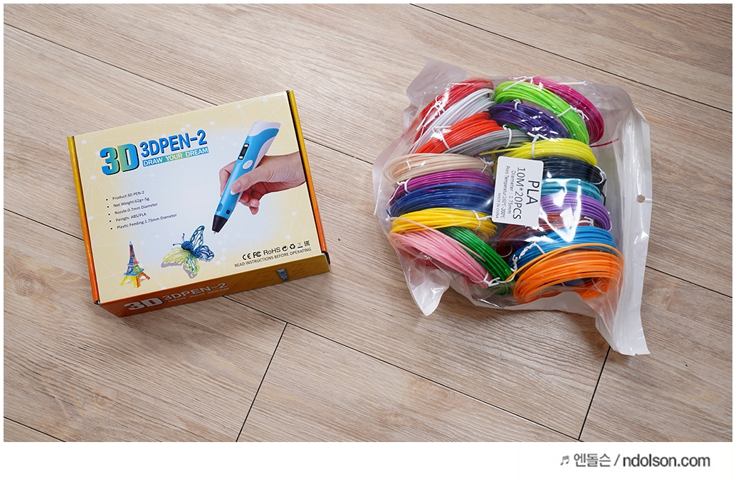 해외직구로 구매했더니 한참 걸리기는 하는 데, 설 연휴가 끼여서 1주일정도 지나서 겨우 도착했습니다. 가격은 3D펜이 9천원대, 필라멘트가 소모품으로 50미터에서 200미터까지 다양하게 추가할 수 있었습니다.