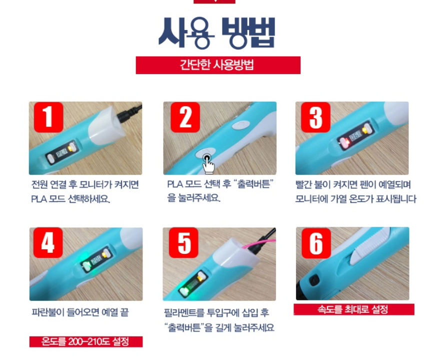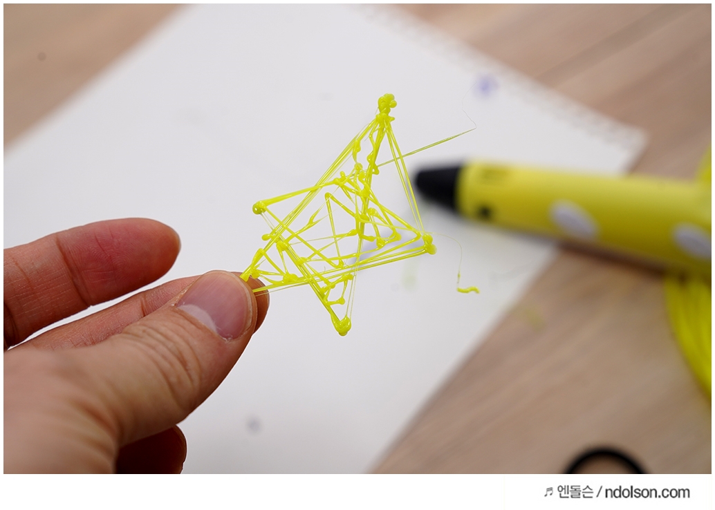 3D 프린터는 많이 봤지만, 3D 펜은 어떤 것인지 직접 써보니 알 것 같았습니다. 아이들의 상상력과 집중력을 높여 주는 도구로 많이 쓴다는 데, 친환경적이고 온도가 너무 뜨겁지 않아서 안전하다는 데 사실 걱정을 좀 하고 구매하였습니다.