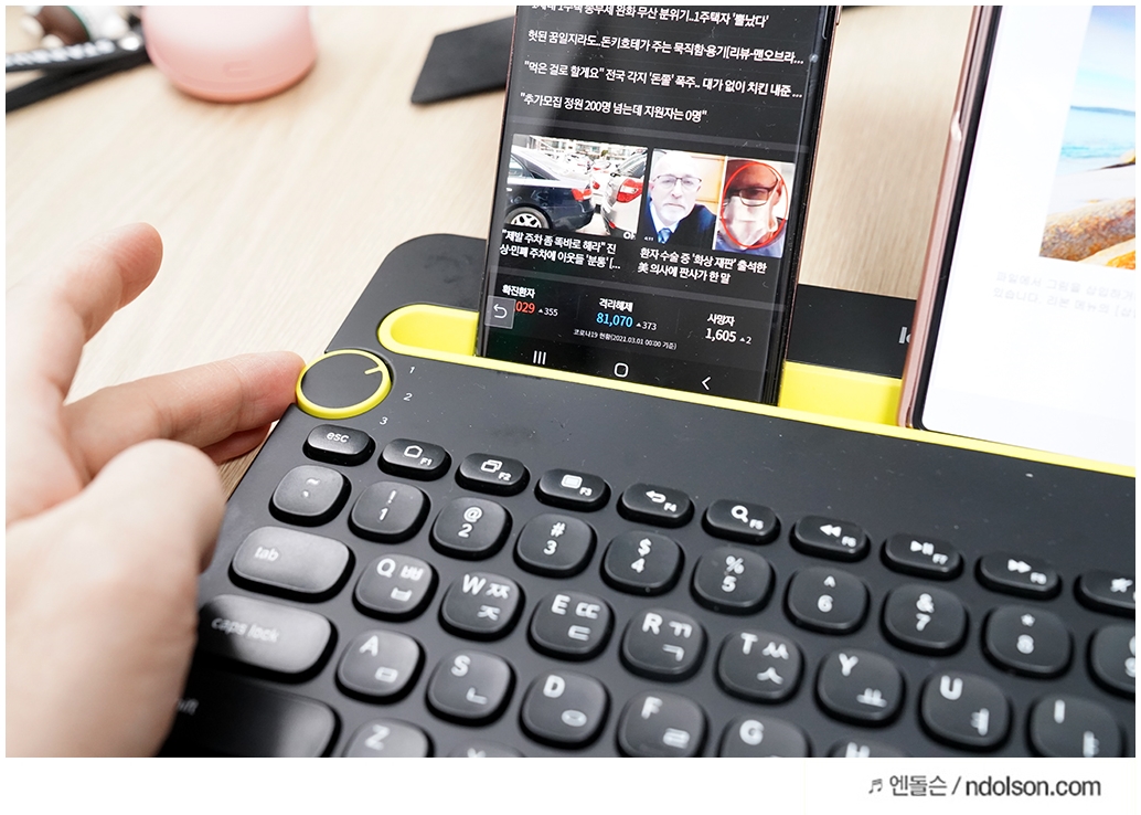 삼성 덱스(Dex)로 독자적인 모바일 환경에서 컴퓨터처럼 쓰거나 애플의 iOS를 잘 지원해주는 로지텍 K480 무선 블루투스 키보드가 있습니다. 애플 OS 지원도 잘되지만, 무엇보다 멀티페어링으로 노트북, 태블릿, 스마트폰을 빠르게 오갈 수 있는 이지스위치가 있어 편리하게 쓸 수 있는데요.