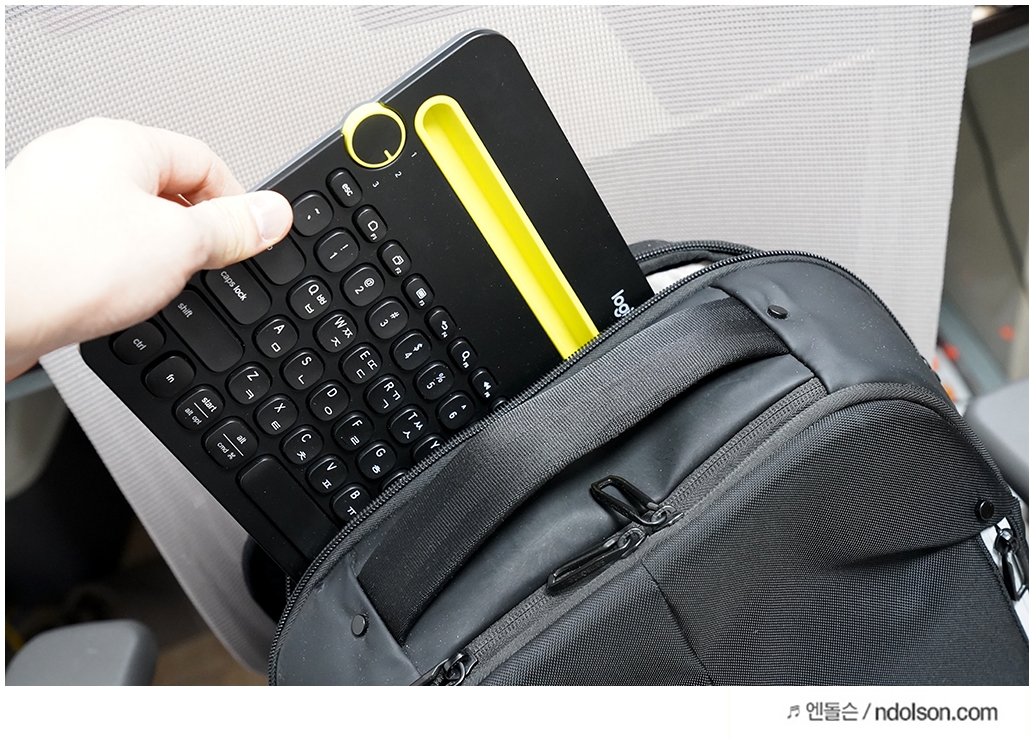 820g 의 생각보다 가벼워 휴대성이 좋고, 출퇴근 및 외근용으로 들고 다니는 백팩에 넣기 적당하였습니다. 아이패드 및 모바일 디바이스와 함께면 충분한 생산성을 주는 키보드 제품이라고 생각됩니다.