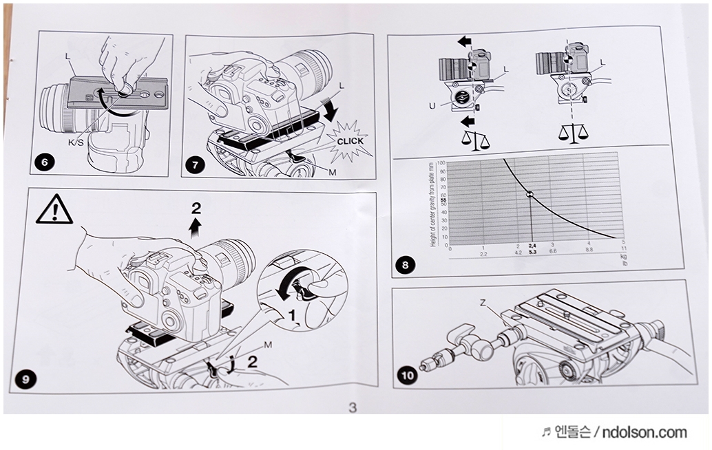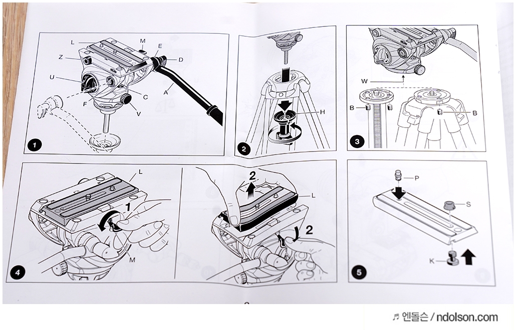 맨프로토 삼각대 헤드볼의 구성품은 영문 매뉴얼과 헤드, 손잡이로 구성되어 있습니다. 설명서를 참고하면 쉽게 조립이 가능합니다.